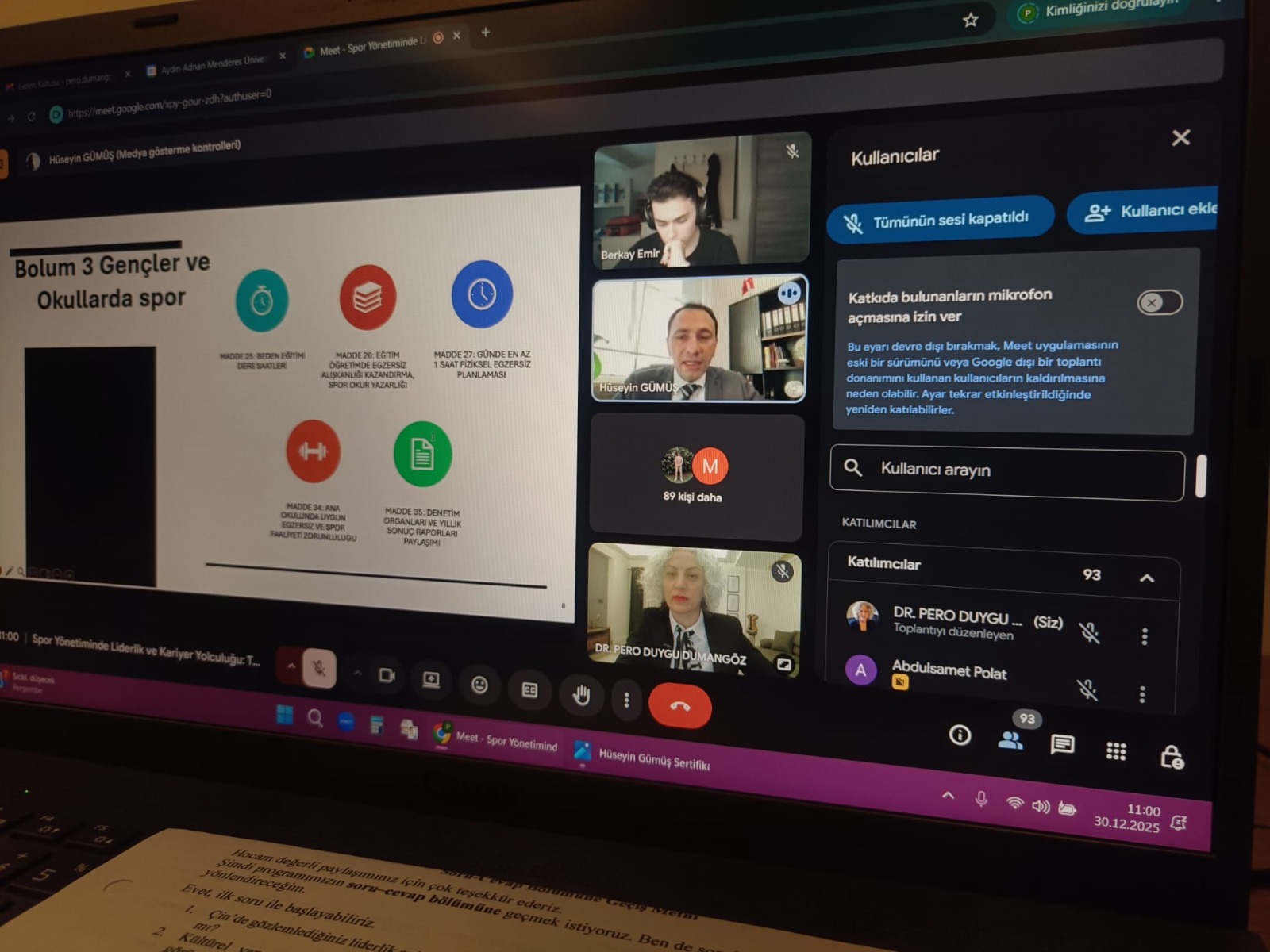 ADÜ Spor Bilimleri Fakültesi tarafından düzenlenen “Spor Yönetiminde Liderlik ve Kariyer Yolculuğu: Türkiye–Çin Karşılaştırmalı Bakış” başlıklı online seminer, 30 Aralık 2025 tarihinde yoğun katılımla gerçekleştirildi.