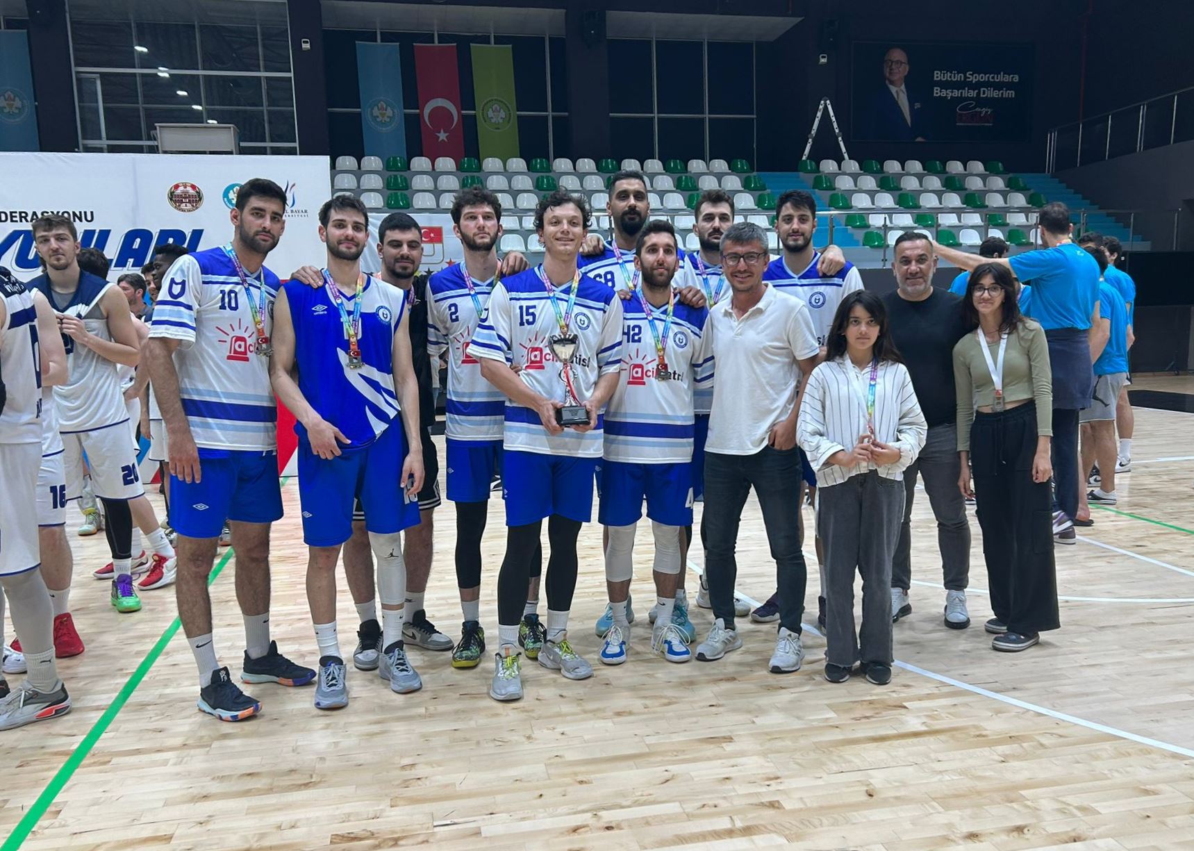 Üniversitemizi temsilen katılacak olan Erkek Basketbol Takımı’nda; Fakültemiz Öğretim Elemanları Doç. Dr. Çağatay Dereceli ve Arş. Gör. Ünsal Altınışık teknik sorumlu, Dr. Öğr. Üyesi Hasan Güler yönetici olarak yer alırken, Muhammet Faik Altınkalem, Orkun Kemal Ertaş, Hamza Alptuğ Baştuğ, Mert Akarsu, Hakan Çakır, Ömer Ayaz, Soner Sarı, Erşah Ersoy, Yunus Özil ve Ege Öğünç sporcu olarak yer alıyor.