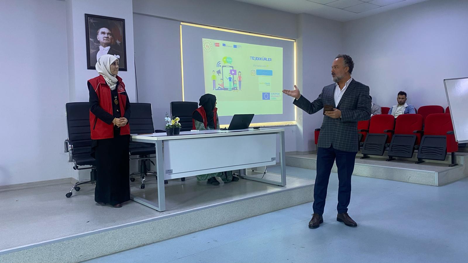 Toplantıda, uzman konuşmacılar Handan Dinçer Aslaner ve Esra Albay tarafından Erasmus+ ve Avrupa Dayanışma Programının kapsamı, başvuru süreçleri ve katılım koşulları hakkında bilgi verilmiştir. Bu programların Avrupa ülkeleri arasında eğitim, öğretim ve gençlik alanında işbirliğini güçlendirmek için kurulduğu ve bu programlar sayesinde gençlerin yurtdışında eğitim alma, staj yapma ve çeşitli kültürel deneyimler edinme şansına sahip olacakları ifade edilmiştir. Bu tür organizasyonların gençlerin kariyerlerine ve kişisel gelişimlerine önemli katkılarda bulunduğunu vurgulanmış ve uluslararası deneyim kazanmanın, gençlerin bakış açılarını genişlettiğini, onları daha donanımlı bireyler haline getirdiğini ifade ederek bu fırsatların değerlendirilmesi gerektiğine dikkat çekilmiştir. Öğrencilerin programın nasıl işlediği ve hangi alanlarda fırsatlar sunduğu hakkında kapsamlı bilgi edinme fırsatı bulduğu program, soru-cevap bölümünün ardından sona erdi.