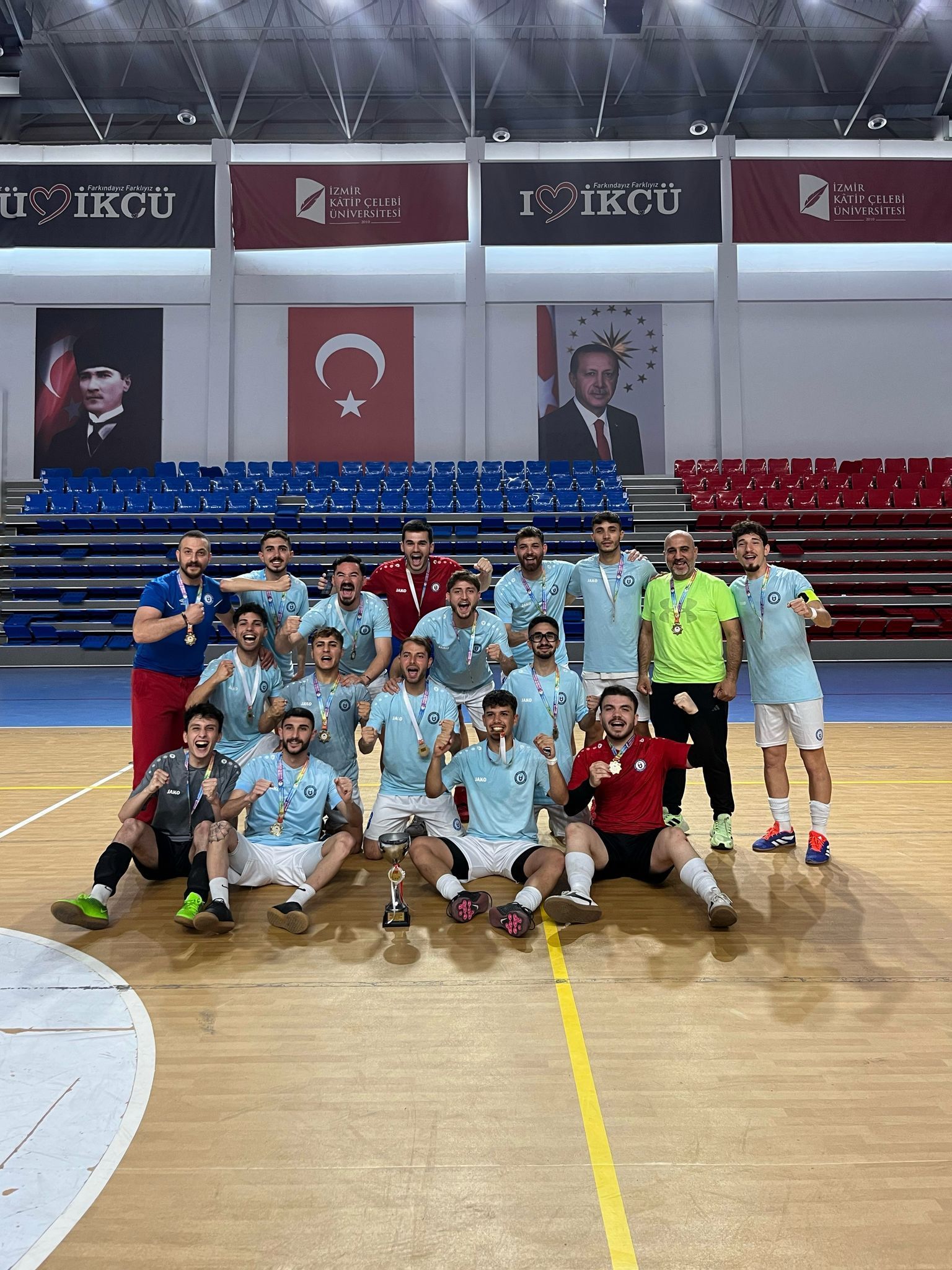 Türkiye Üniversite Sporları Federasyonu tarafından düzenlenen Futsal (Salon Futbolu) Bölgesel Lig (Ünilig) müsabakaları, 21-25 Nisan 2025 tarihleri arasında İzmir İzmir Kâtip Çelebi Üniversitesi’nde yapıldı. Üniversitemiz futsal takımı sırasıyla Kayseri Üniversitesi’ni 8-3, Dokuz Eylül Üniversitesi’ni 5-2, İzmir İzmir Kâtip Çelebi Üniversitesi’ni 7-5 ve Ege Üniversitesi’ni 4-1 yenerek şampiyonluğu garantilemiş ve son müsabakada İzmir Demokrasi Üniversitesi ile 3-3 berabere kalarak namağlup şampiyon olmuştur. Takımımız bu sonuçlarla birlikte 26-30 Mayıs 2025 tarihleri arasında Nevşehir’de düzenlenecek Süper Lig’e yükselme finallerinde Ege Bölgesi’ni temsil edecektir.
