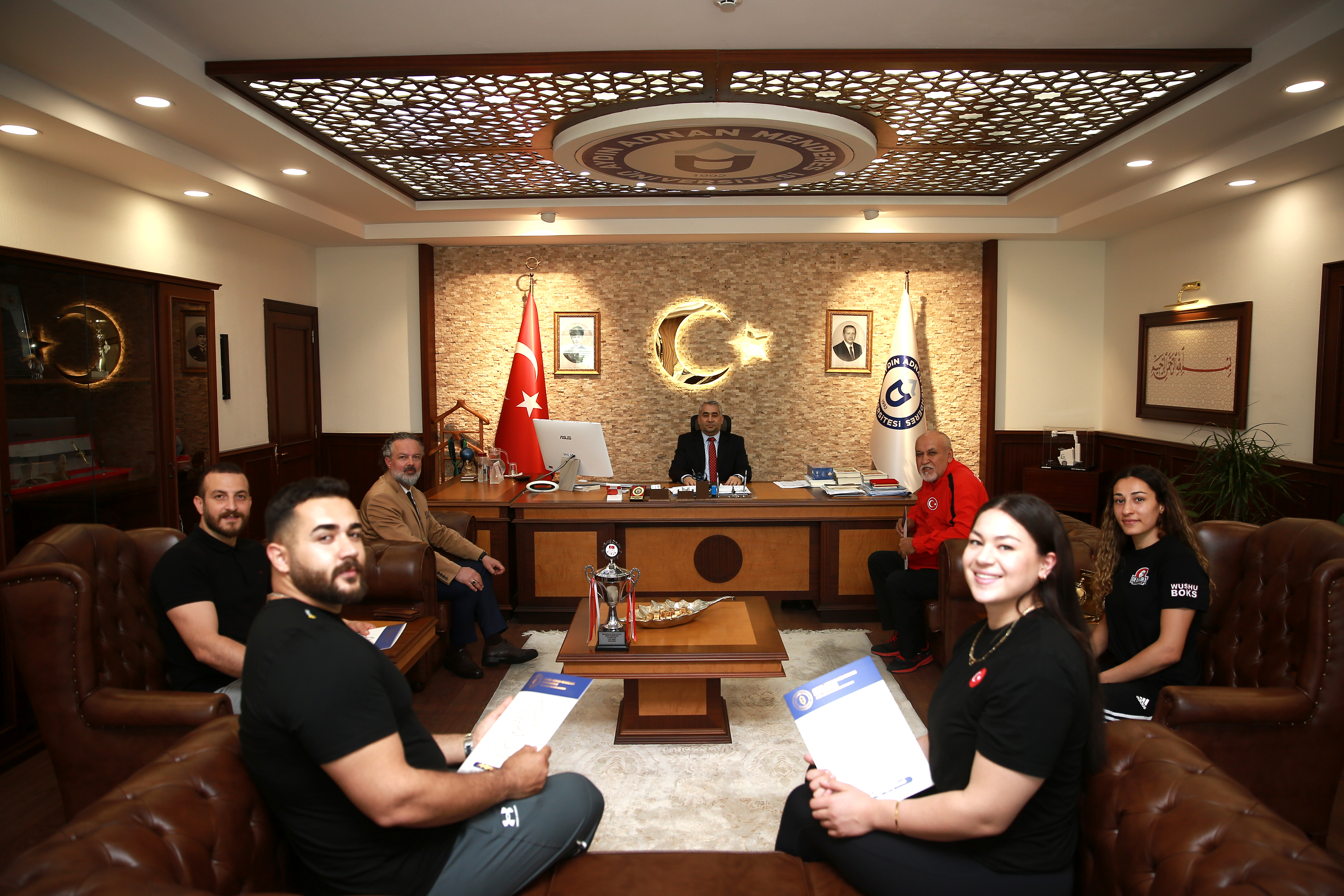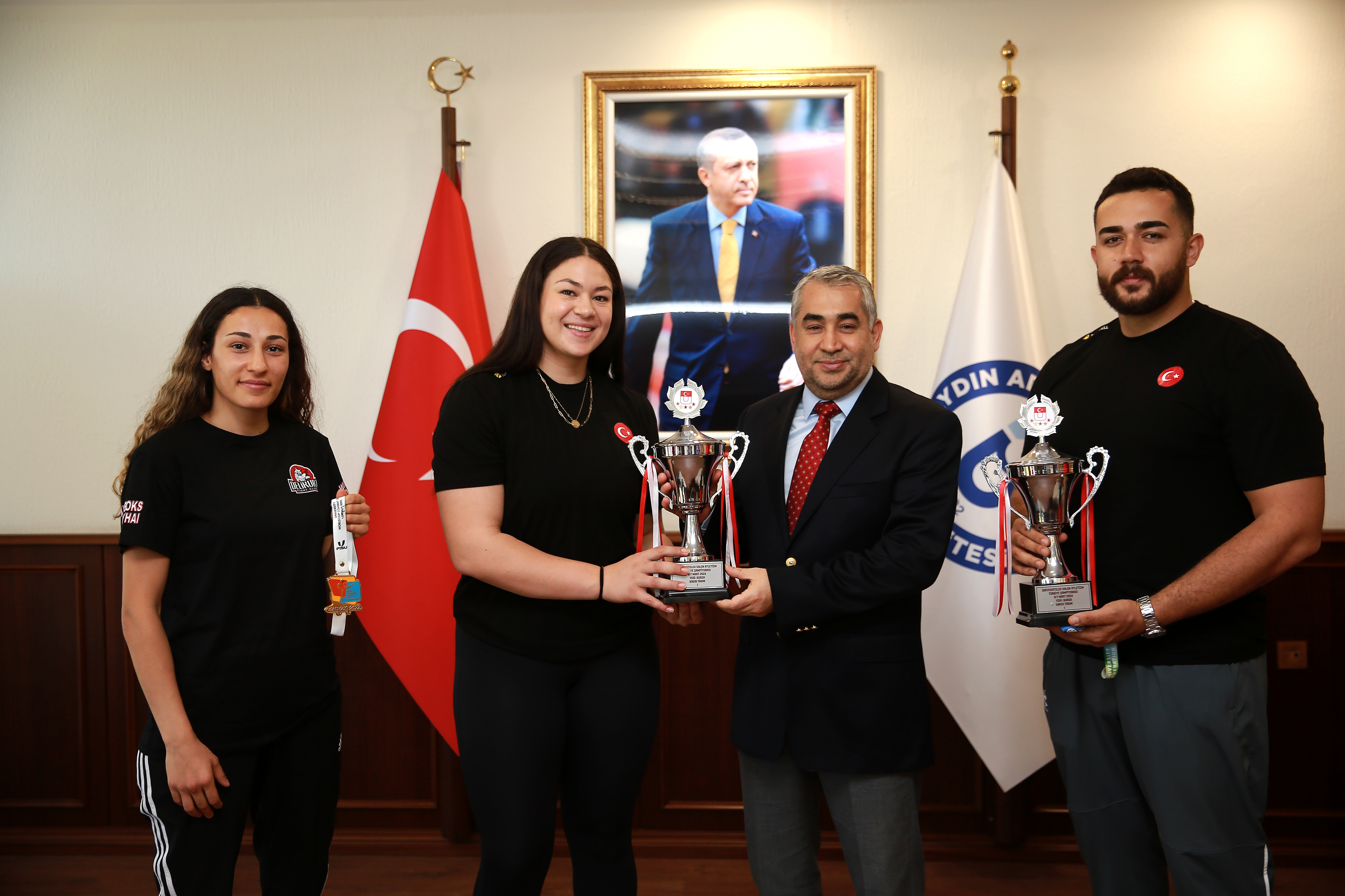 Avrupa Atmalar Kadınlar Şampiyonu Özlem Becerek, Türkiye Üniversiteler Şampiyonu, Avrupa Atmalar üçüncüsü ve Takım Kaptanı Fatih Aslan, Muaythai Üniversiteler Türkiye Şampiyonu Nefise Atalay, Üniversitemiz Rektörü Prof. Dr. Bülent Kent’i 3 Nisan 2024 tarihinde makamında ziyaret etti.