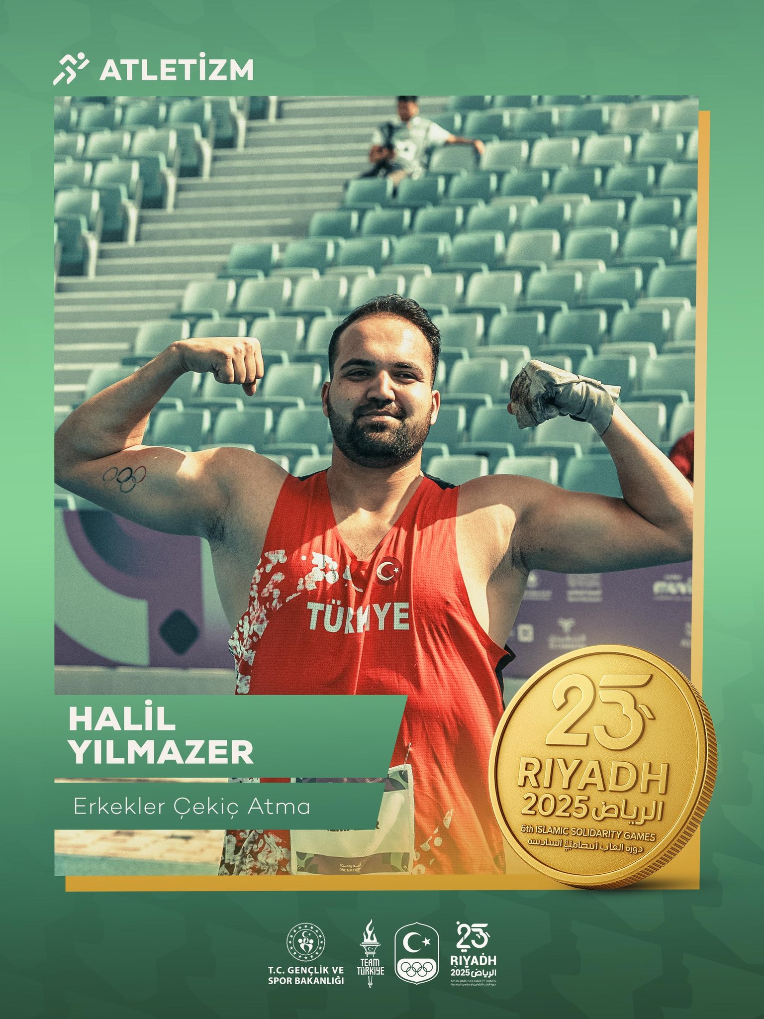 Erkekler çekiç atma mücadelesinde yer alan Halil Yılmazer ise 74.70 metrelik derecesiyle tüm rakiplerini geride bırakarak altın madalyanın sahibi oldu.