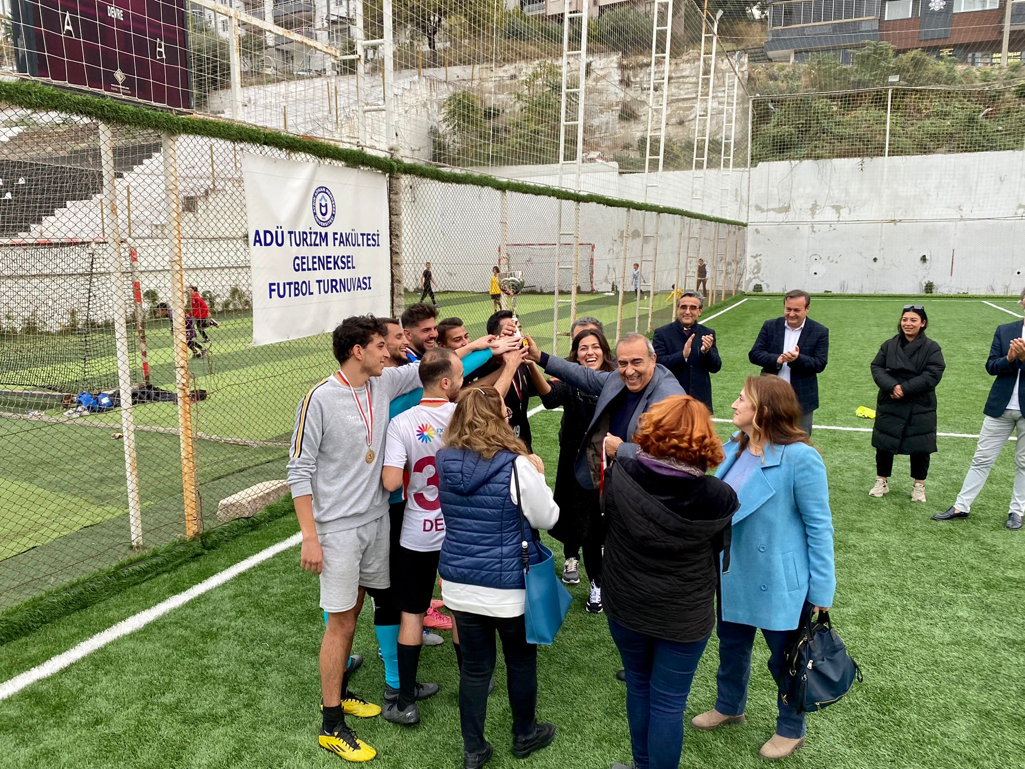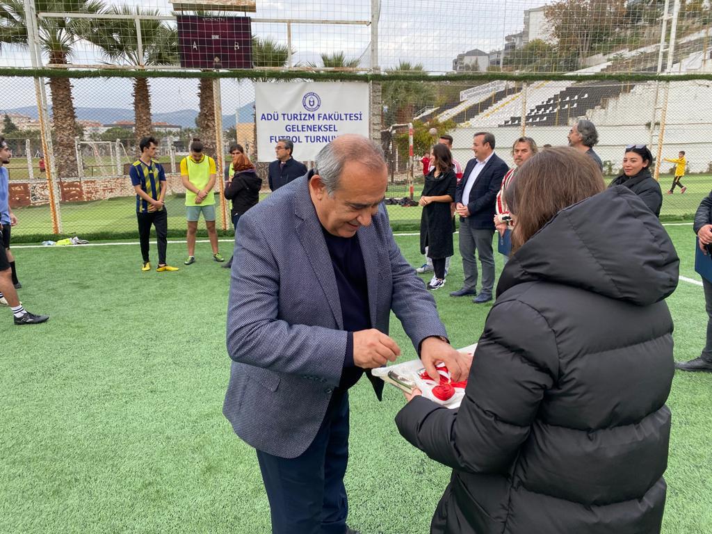 16.11.2022 tarihinde 2022-2023 Adü Geleneksel Futbol Turnuvası’nın final maçı, Kuşadası Kaymakamı Sadettin Yücel, Kuşadası Belediye Başkan Vekili Seyfi Seyhan Süvari, Kuşadası Kent Konseyi Başkanı Mustafa Ünver, Kuşadası Genç İş İnsanları Derneği Başkanı Fahri Yetiş ve Yönetim Kurulu Üyeleri, Adü Turizm Fakültesi Dekan Yardımcıları Doç. Dr. Aziz Bostan ve Doç. Dr. Başak Burcu Eke, Öğretim Görevlileri Büşra Hafçı Yorulmaz, Funda Sönmezateş, Fatih Epik, Burhanettin Demir ve Dr. Öğretim Üyesi Melek Ece Öncüer, Kuşadası Gönüllüsü Genç Esnaf ve İş İnsanları Derneği Başkanı Fahri Yetiş ve yönetim kurulu üyelerinin katılımıyla ve Mutlu Halı Saha işletmecisi Mutlu Sezer’in ev sahipliğinde gerçekleştirilmiştir.