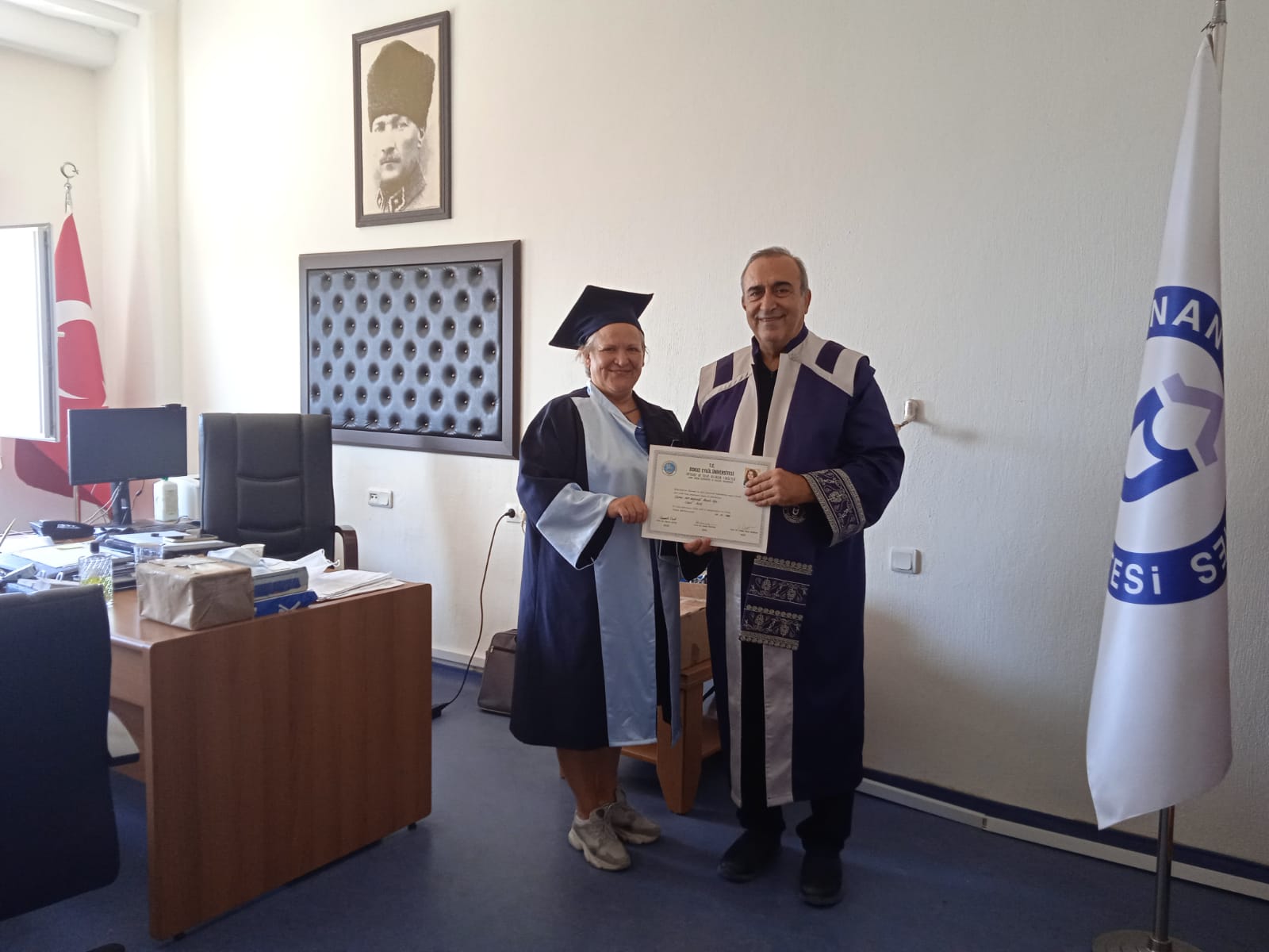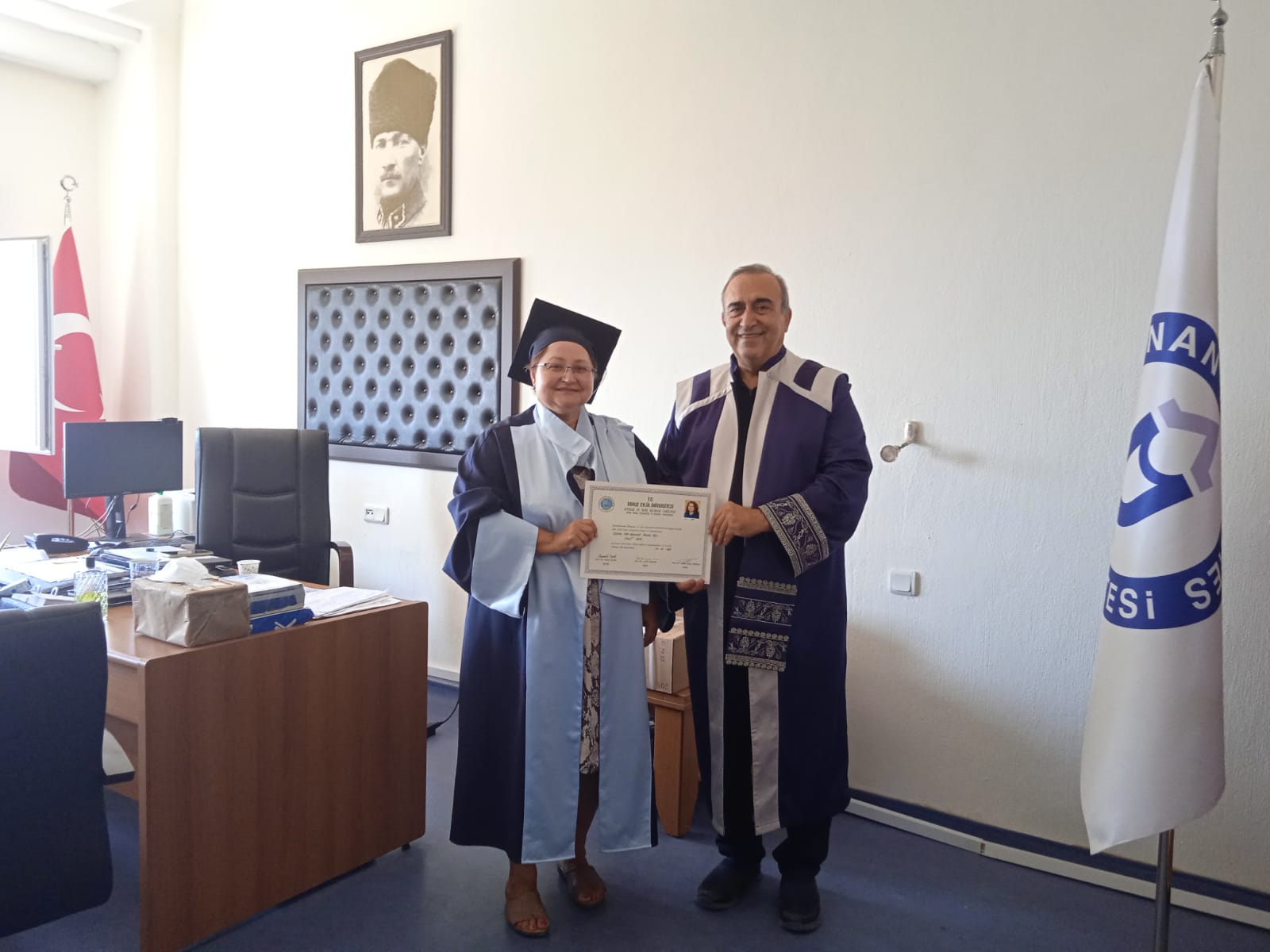 Lisans diplomalarını fakültemizin Dekan Yardımcısı Doç.Dr. Aziz BOSTAN hocamızın bizzat takdim ettiÄŸi mezunlarımız, cübbelerini giyerek Dekan Yardımcılarımız Doç.Dr. Aziz BOSTAN ve Doç.Dr. BaÅŸak Burcu EKE ile hatıra fotoÄŸrafları çektirdiler.