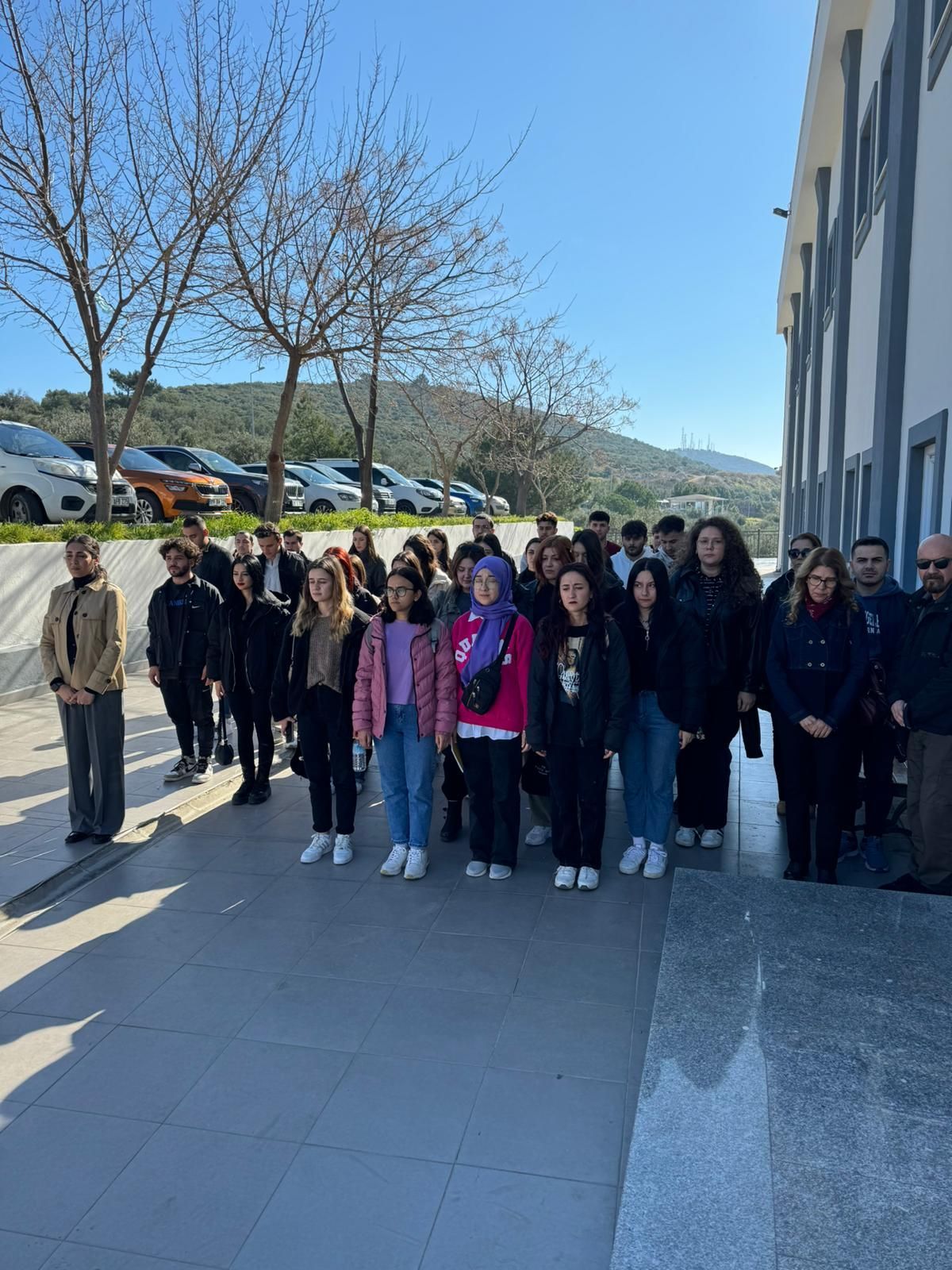 Öğrencilerimiz, akademik ve idari kadromuz, depremde yaşamını yitiren vatandaşlarımızı anmak ve onların hatıralarını yaşatmak için bir araya geldi. Kayıplarımıza olan derin üzüntümüzü ifade etmek amacıyla gerçekleştirilen etkinlikte saygı duruşunun ardından yapılan konuşmalarda, depremde hayatını kaybeden vatandaşlarımızın ailelerine başsağlığı ve sabır dilekleri iletilerek, onların acılarını paylaşma ve destek olma mesajları verildi.