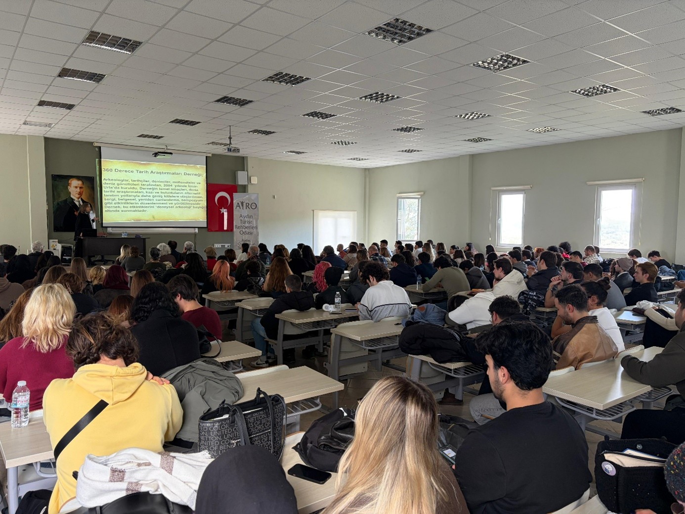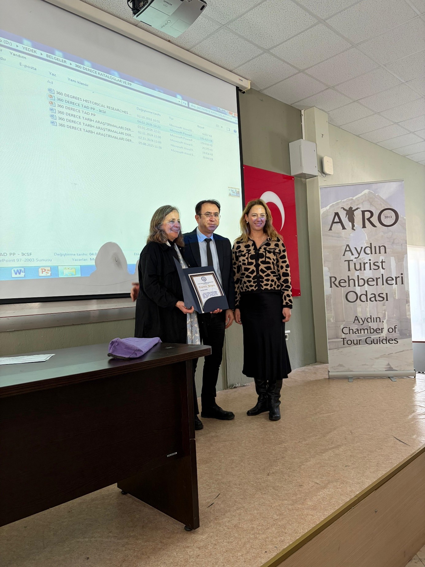 ATRO ile Turizm Rehberliği Bölümü işbirliği kapsamında 360 Derece Tarih Araştırmaları Derneği Kurucusu Mualla ERKURT'ın anlatımıyla “Antik Çağlarda Denizcilik ve Deneysel Arkeoloji ” konulu sunum ADÜ Turist Rehberliği Bölümü öğrencileri ve turist rehberleri katılımıyla 06.02.2026 tarihinde ÇAŞ’ta gerçekleştirilmiştir. Hem öğrenci hem de rehberlerin yoğun ilgi gösterdiği sunum ADÜ Turizm Fakültesi adına Doç.Dr. Hakan ATAY ve ATRO adına Neslihan Hurda’nın teşekkür belgeleri takdimi ile son bulmuştur.