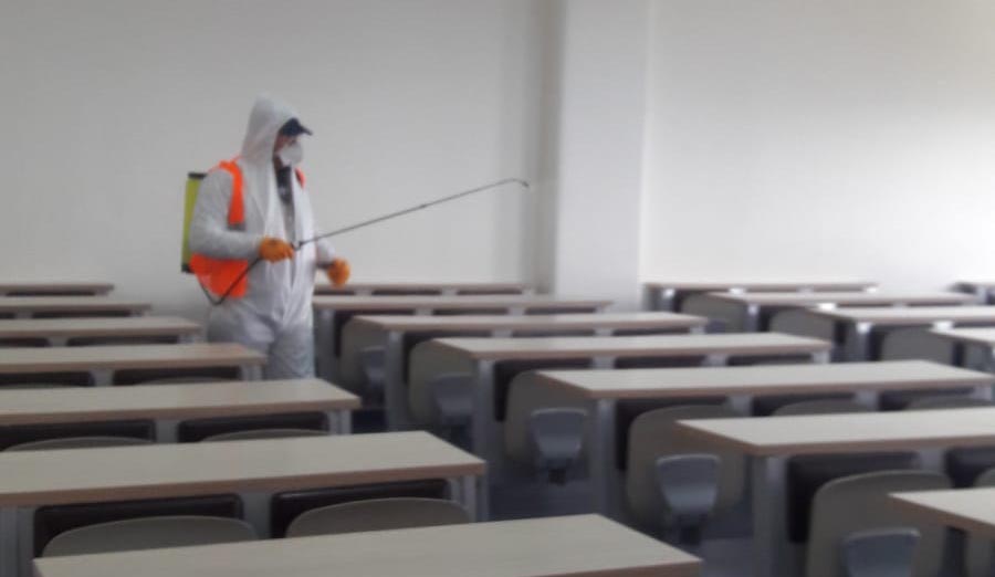 Fakültemiz 16 Mart 2020 Pazartesi günü, tüm dünyayı etkisi altına alan Corona Virüs Kovid-19 salgınının yayılmasını engellemek adına Kuşadası Belediyesi tarafından dezenfekte edilmiştir. İlçemizde virüsün yayılmasını engellemek adına tedbirlerini eksiksiz almaya çalışan Kuşadası Belediyesi'ne teşekkür ederiz.
