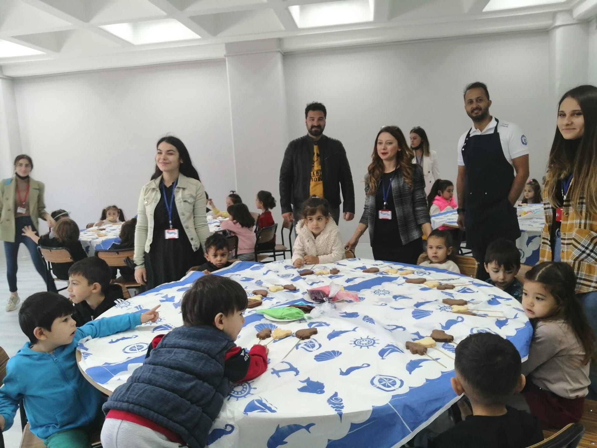 KuÅŸadası Özel Deniz Yıldızı Anaokulunun minik öÄŸrencileri fakültemizin Uygulama Mutfağında, ÖÄŸr.Gör. Ozan GÜNGÖR ve ÖÄŸr.Gör. Okan Umut ŞİMÅžEK ile birlikte kurabiye süsleme faaliyeti yaptılar.