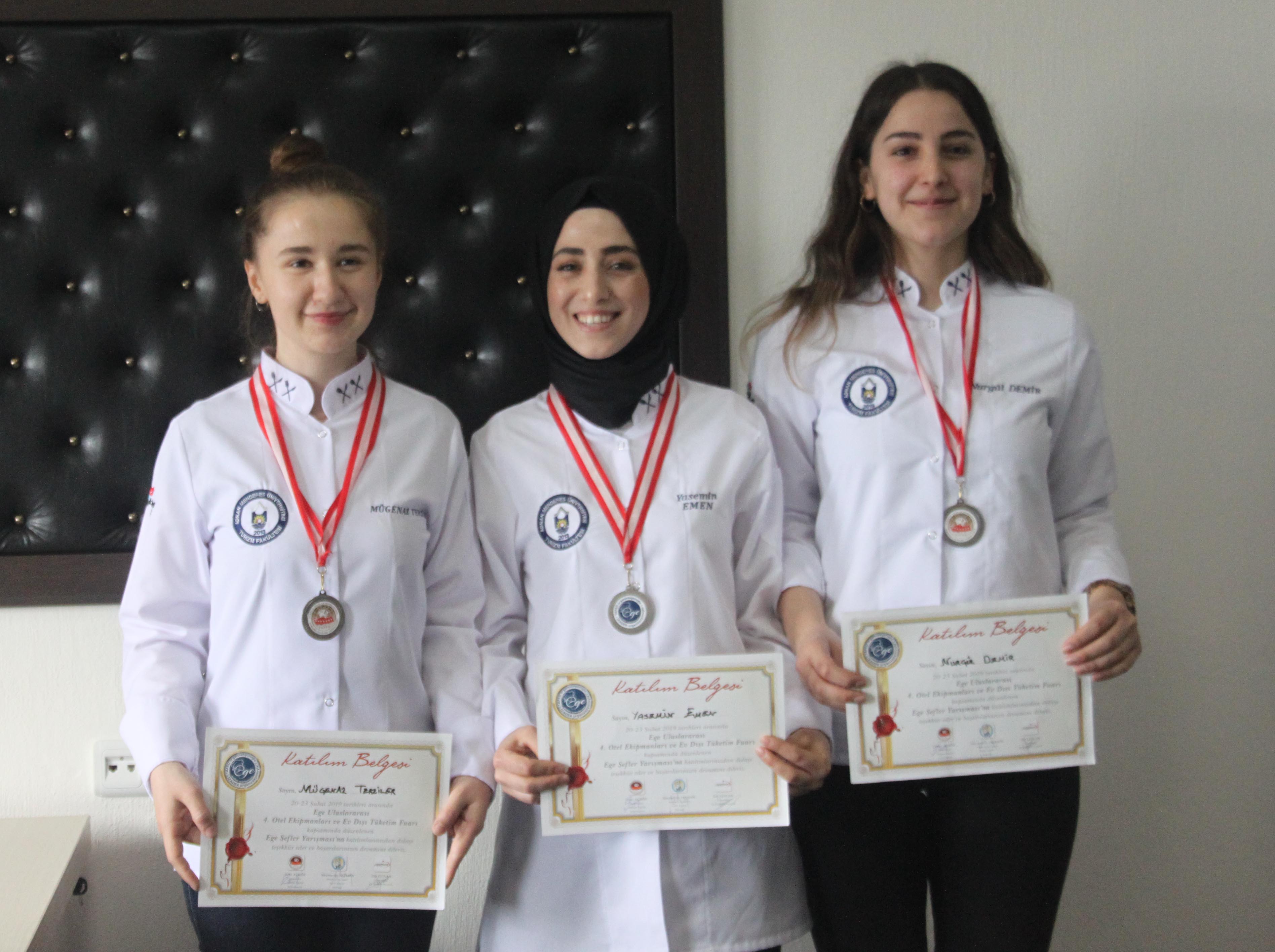 Fakültemiz öğrencileri Mügenaz TERZİLER, Nurgül DEMİR ve Yasemin EMEN, İzmir Aşçılar Derneği tarafından 20-25 Şubat 2019 tarihleri arasında düzenlenen Ege Şefler Yarışmasında gümüş madalya kazandılar.