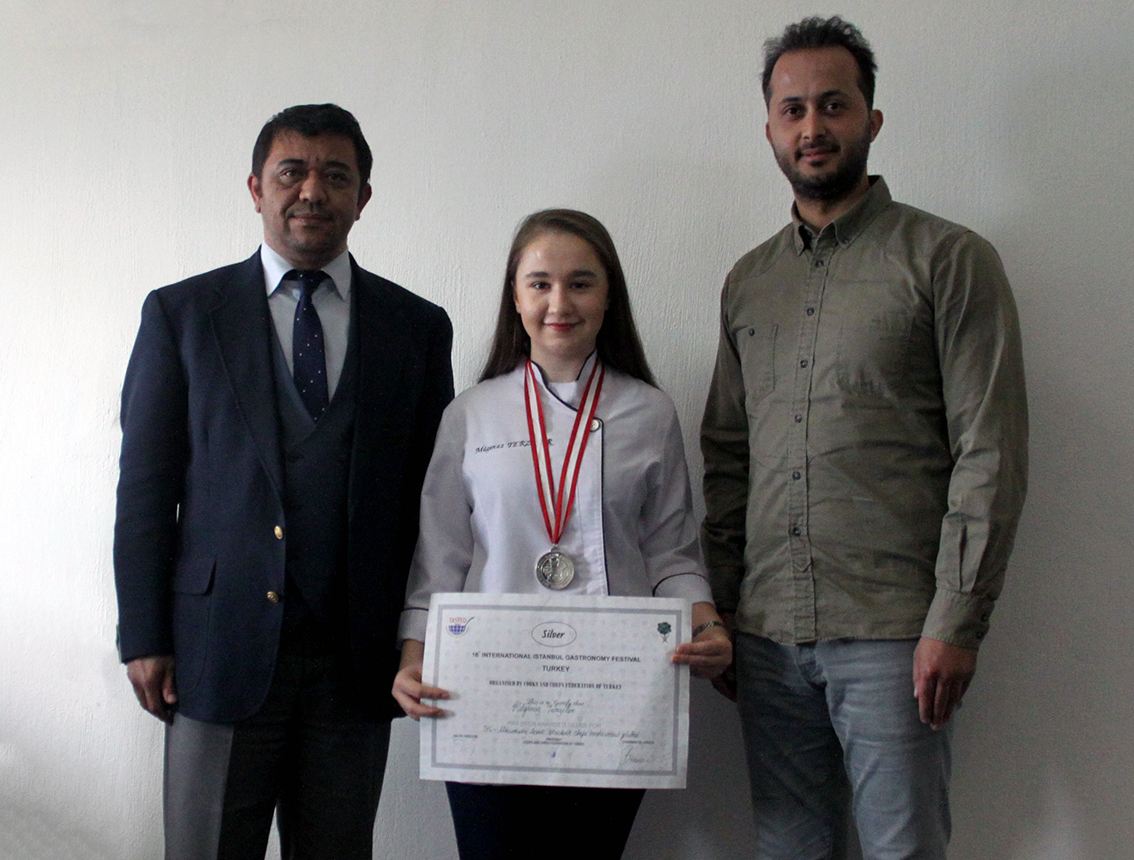 Fakültemiz Yiyecek İçecek İşletmeciliği Bölümü Öğretim Görevlisi Okan Umut ŞİMŞEK'in önderliğinde bölümün başarılı öğrencisi Mügenaz TERZİLER yarışmada Tatlı Tabağı dalında gümüş madalya kazandı.