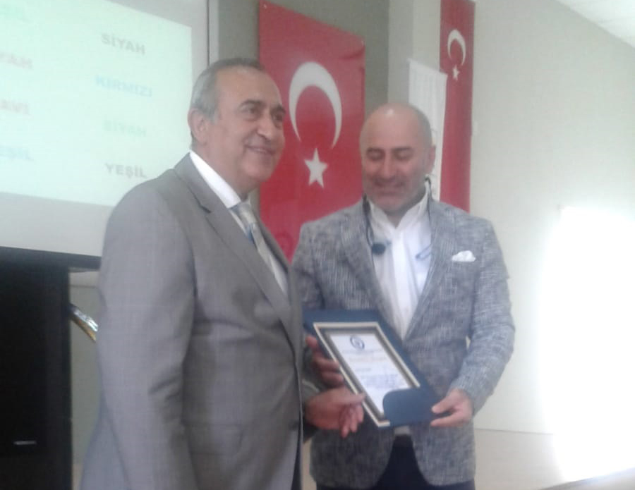 Etkinlik sonunda Turizm Fakültesi Dekan Yardımcısı Dr.Öğr. Üyesi Aziz BOSTAN tarafından Engin SEZGİN’e katkılarından dolayı bir teşekkür belgesi takdim edilmiştir.
