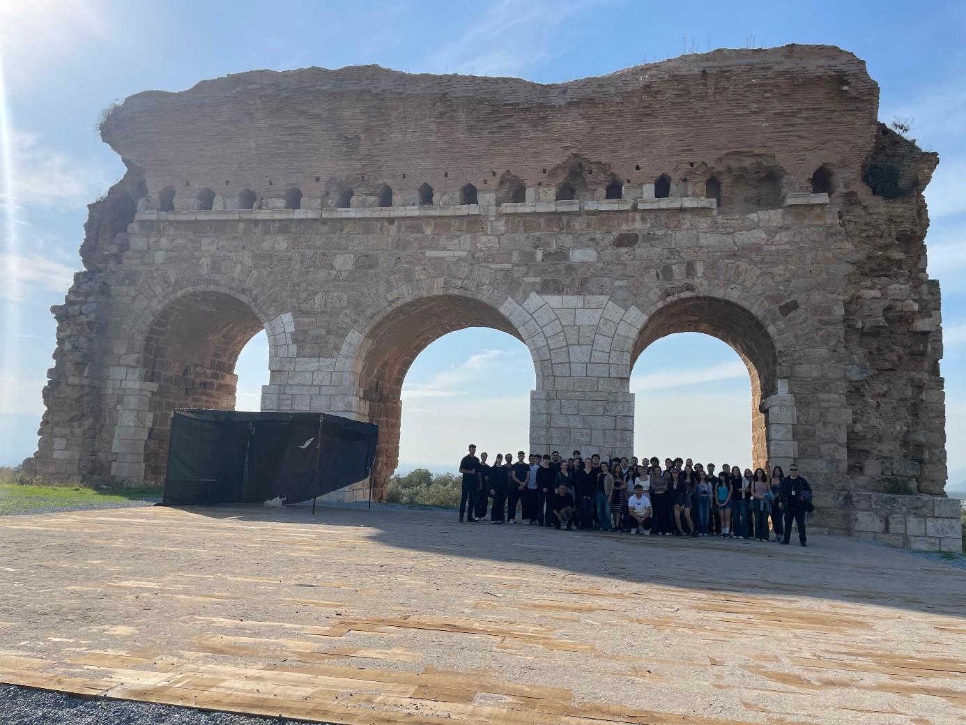 Turizm Rehberliği Bölümü 1. Sınıf öğrencileri, fakültemiz Öğretim Üyesi Prof. Dr. Abdullah TANRISEVDİ koordinatörlüğünde ve Öğr. Gör. Ergün EFENDİ rehberliğinde 5.11.2025 tarihinde 56 kişilik öğrenci grubu ile Aydın Arkeoloji Müzesi’ni ve Tralleis Antik Kenti’ni ziyaret etmişlerdir. Ziyaret sırasında müze görevlilerinden ve Tralleis kazısında görev yapan arkeologlardan ayrıntılı bilgiler edinmişlerdir.