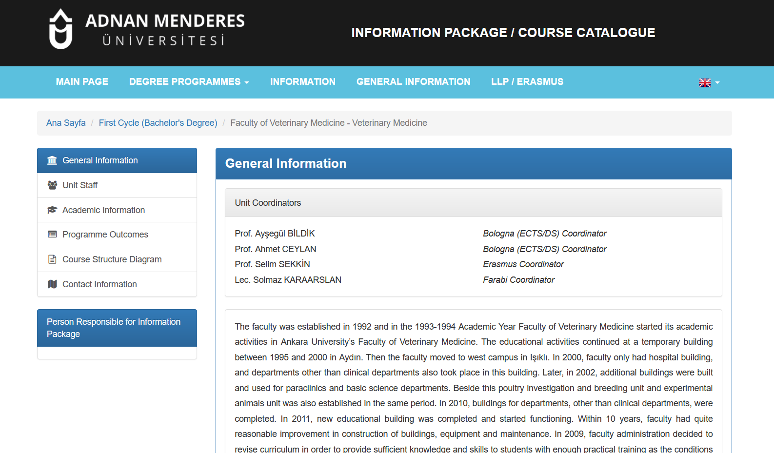 Faculty of Veterinary Medicine Information Package and Course Catalogue