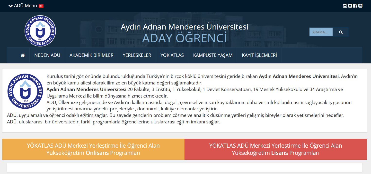 Aydın Adnan Menderes Üniversitesi Aday Öğrenci Bilgilendirme Sayfası
