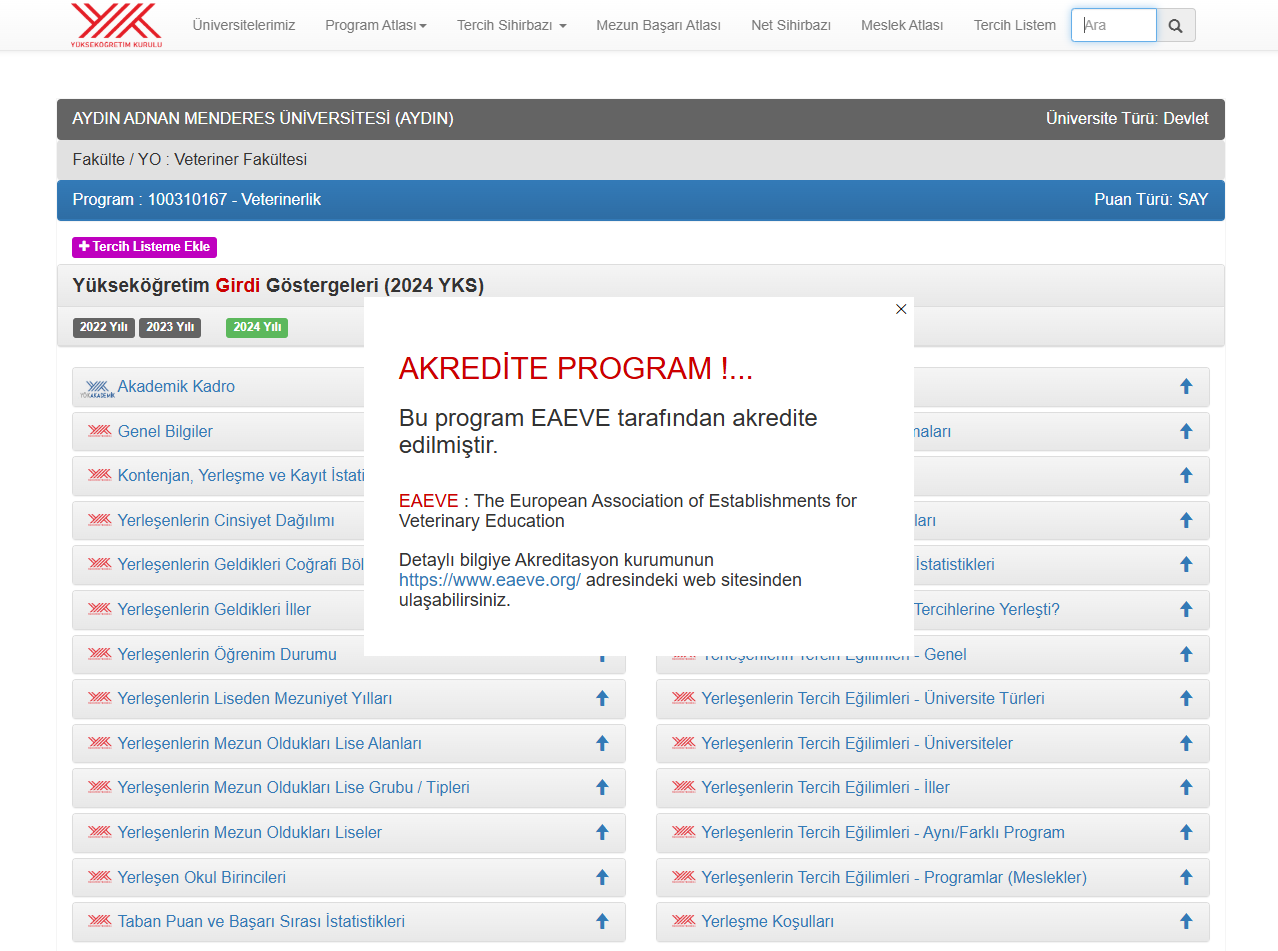 Aydın Adnan Menderes Üniversitesi Veteriner Fakültesi YÖK Atlas Bilgilendirme Sayfası