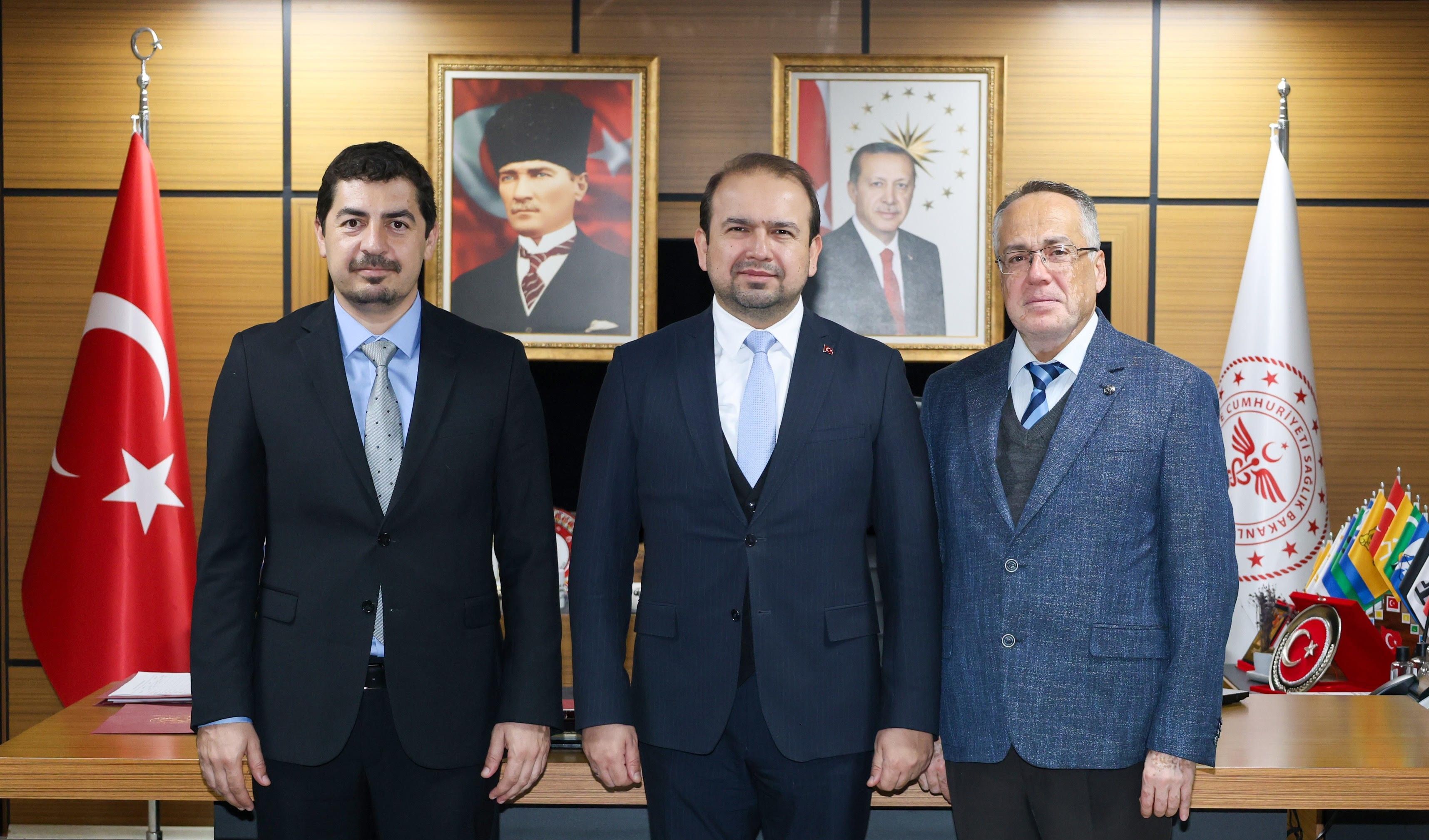 Aydın Adnan Menderes Üniversitesi Veteriner Fakültesi Dekan V. Prof. Dr. Cavit Kum ile Dekan Yardımcısı Prof. Dr. Mehmet Gültekin, Aydın İl Sağlık Müdürü Dr. Eser Şenkul’u makamında ziyaret etti.