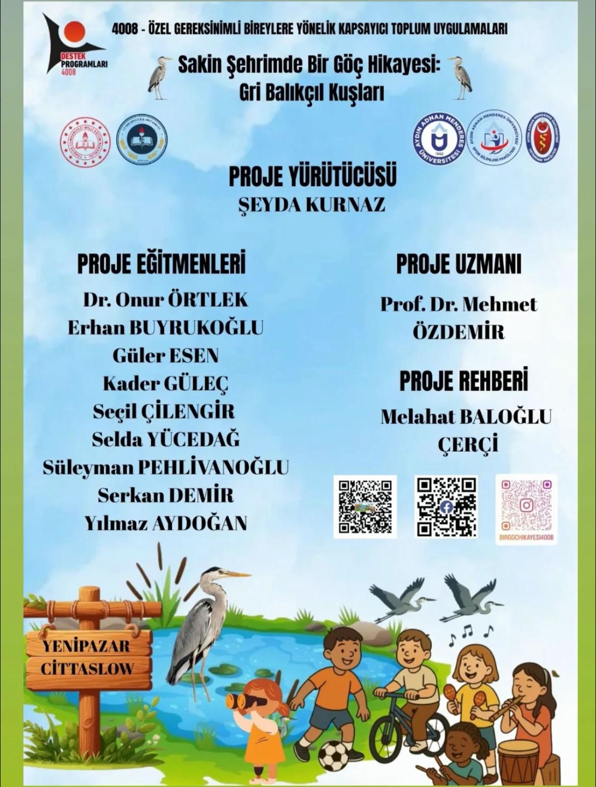 TÜBİTAK 4008 Özel Gereksinimli Bireylere Yönelik Kapsayıcı Toplum Uygulamaları Destekleme Programı kapsamında yürütülen “Sakin Şehrimde Bir Göç Hikayesi: Gri Balıkçıl Kuşları” adlı proje çerçevesinde, 12 Haziran 2025 tarihinde Aydın Adnan Menderes Üniversitesi Kanat Ger Topluluğu’na Veteriner Fakültesi’nde bir ziyaret gerçekleştirildi.