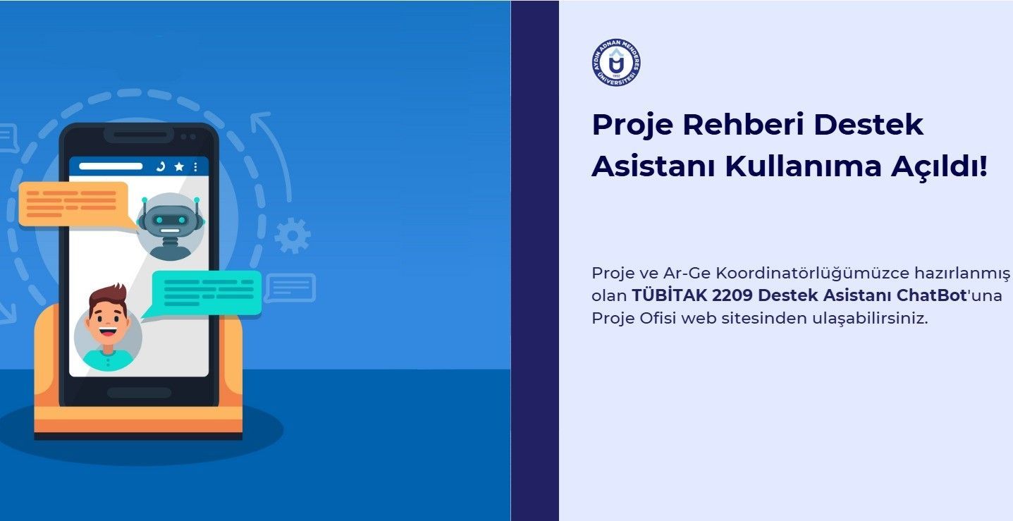 Kullanıcılar, https://idari.adu.edu.tr/projeofisi adresi üzerinden erişim sağlayarak, sayfanın sağ alt köşesinde yer alan konuşma balonu simgesine tıklayarak asistana ulaşabiliyor.