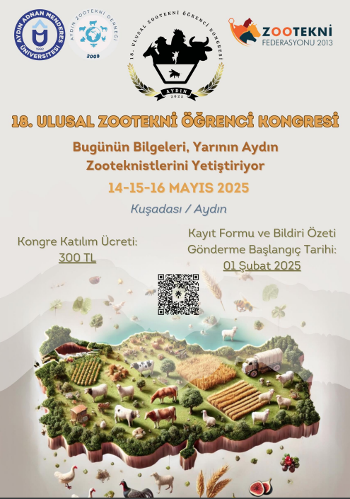 Fakültemiz Zootekni Bölümü öncülüğünde 14-16 Mayıs 2025 tarihlerinde gerçekleştirilecek olan "18. Ulusal Zootekni Öğrenci Kongresi (UZOK)" ile ilgili duyuru afişi aşağıda yer almaktadır.
