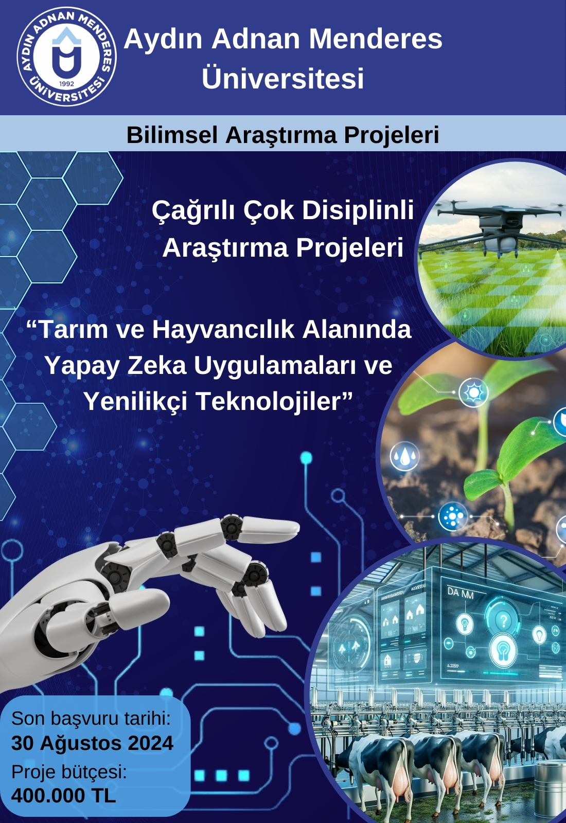 Üniversitemiz senatosunun 27/03/2024 tarihli, 2024-04 sayılı ve XII karar nolu toplantısında kararlaştırılan Aydın Adnan Menderes Üniversitesi Bilimsel Araştırma Projeleri Yönergesinde yer alan “Çağrılı Çok Disiplinli Araştırma Projeleri” kapsamında ilk proje konusu ADÜBAP Komisyonu tarafından belirlenmiştir.