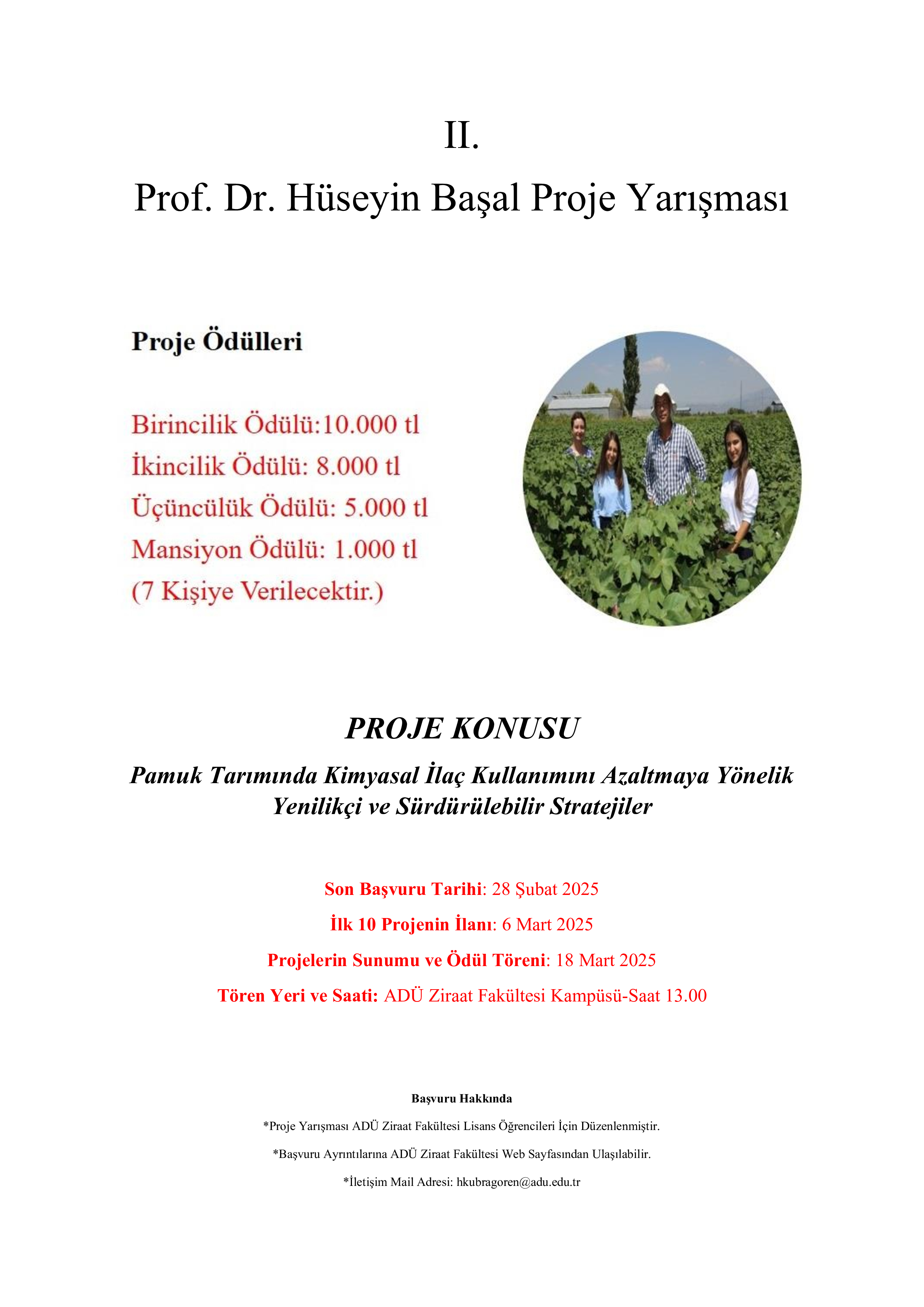 📢 II. Prof. Dr. Hüseyin Başal Proje Yarışması Başvuruları Başladı!