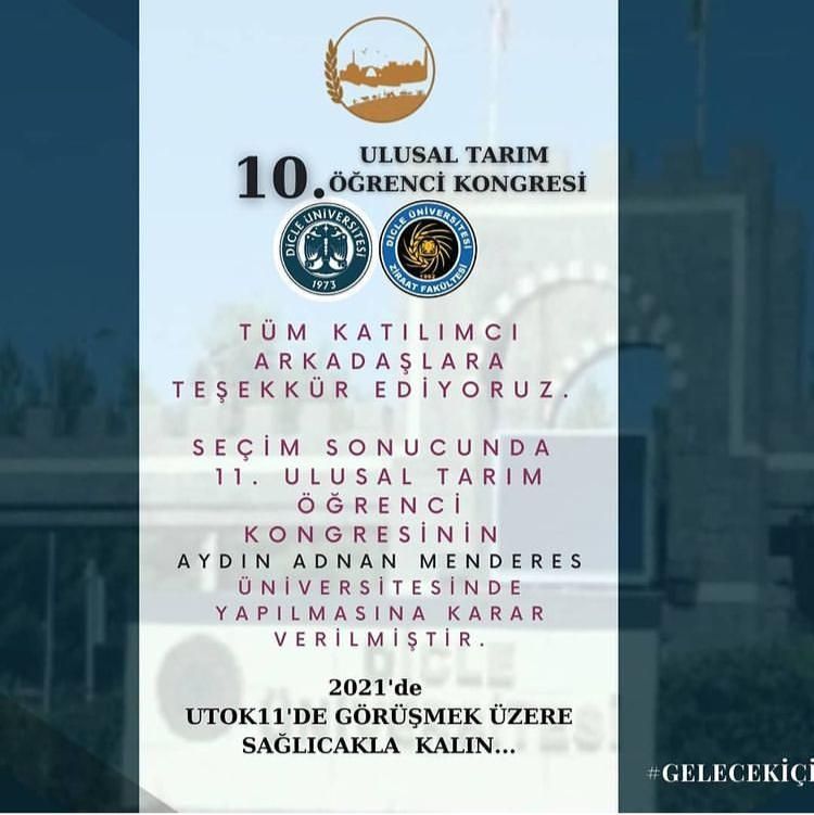 Ziraat Fakültesi Dekan Vekili Prof. Dr. İbrahim GENÇSOYLU “İlk olarak 2011 yılında Ege Üniversitesi tarafından organize edilerek başlayan, Ulusal Tarım Öğrenci Kongresinin 11.si, 2021 yılında Ziraat Fakültemiz tarafından yapılacağını belirtti. Covid-19 salgınının durumuna göre kongrenin çevrimiçi ya da yüz yüze yapılacağını, ancak gönüllerinin kongreye katılacak olan tüm Ziraat Fakültesi öğrencilerini Aydın’da ağırlamak olduğunu belirtti”. Ayrıca, Diyarbakır’da çevrimiçi olarak düzenlenen kongrenin sonunda, Malatya Turgut Özal Üniversitesi ve Eskişehir Osmangazi Üniversitesi Ziraat Fakültesi ile yarıştıklarını ve %66 oy oranıyla 11. Ulusal Tarım Öğrenci Kongresi’nin Aydın Adnan Menderes Üniversitesi Ziraat Fakültesi tarafından yapılmasına karar verildiğini belirtti.