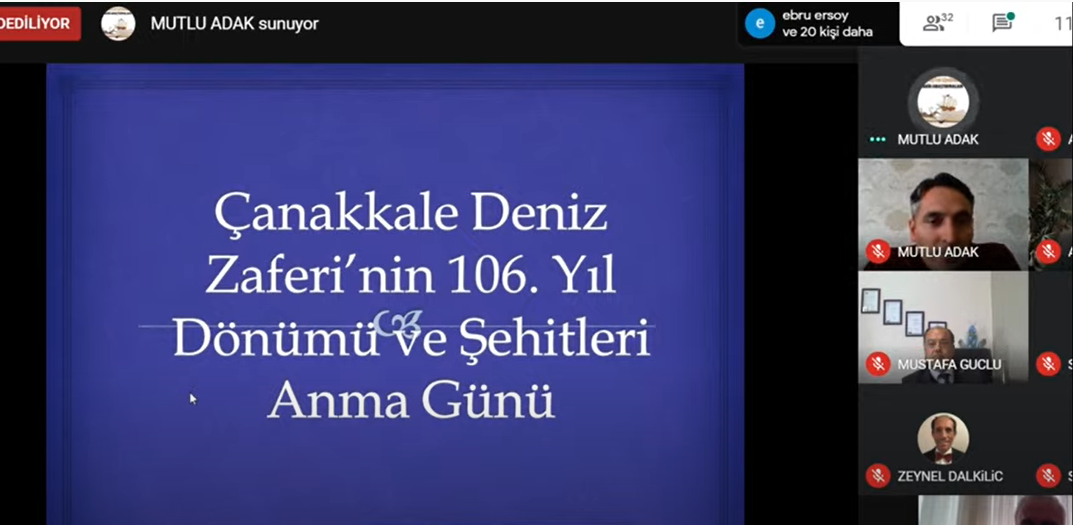 18 Mart 2021 PerÅŸembe günü Aydın Adnan Menderes Üniversitesi Ziraat Fakültesi tarafından 18 Mart Çanakkale Zaferi ve Åžehitlerinin Anma Günü EtkinliÄŸi düzenlendi. Çevrim içi olarak düzenlenen etkinlik aynı anda Yotube’dan canlı olarak yayınlandı. EtkinliÄŸe ADÜ Atatürk İlkeleri ve İnkılap Tarihi Bölümü ÖÄŸretim Görevlisi Dr. Mutlu ADAK konuk olarak katıldı. Ziraat Fakültesi Dekan V. İbrahim Gençsoylu, Dekan Yardımcıları, Ziraat Fakültesi ÖÄŸretim Üyeleri ve öÄŸrencilerinin izleyici olarak katıldığı etkinliÄŸe Ulu Önder Mustafa Kemal Atatürk ve tüm Åžehitlerimiz adına Saygı DuruÅŸu ve İstiklal Marşının okunmasıyla baÅŸlandı. Daha sonra ÖÄŸretim Görevlisi Dr. Mutlu ADAK Çanakkale Zaferiyle ilgili olarak askeri, politik ve sosyal yönlerini detaylı olarak ortaya koyan bir konuÅŸma yaptı. Özellikle konuÅŸmasının son kısmında zaferin kazanılmasında büyük rol oynayan Türk Kadının rolünü vurgulayan konuÄŸumuz birçok alanda zaferin kazanılmasının etkilerini anlatarak konuÅŸmasını tamamladı. Etkinlik soru-cevap kısmıyla sonlandırıldı.