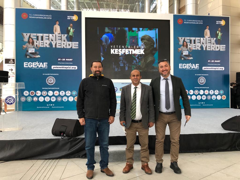 Aydın Adnan Menderes Üniversitesi Ziraat Fakültesi öğrencileri, 21 mart 2022 Pazartesi günü Cumhurbaşkanlığı İnsan Kaynakları Ofisinin Koordinasyonu ve Ege Üniversitenin ev sahipliğinde düzenlenen Ege Bölgesi Kariyer Fuarına (EGEKAF) katıldı. İzmir Fuar alanında düzenlenen fuara, öğrencilerimizle birlikte Ziraat Fakültesi Dekan V. Prof. Dr. İbrahim Gençsoylu, Dekan Yardımcıları Prof. Dr. Ahmet Kılıçkan ve Dr. Öğretim Üyesi Mustafa Ali Kaptanda katılım sağladılar. Ziraat Fakültesi öğrencileri yoğun olarak fuarda bulunan ziraat ve tarımsal alanlı faaliyet gösteren firmalar ile görüşmeler yapıp kariyerleri için fırsat kapılarını araladılar.