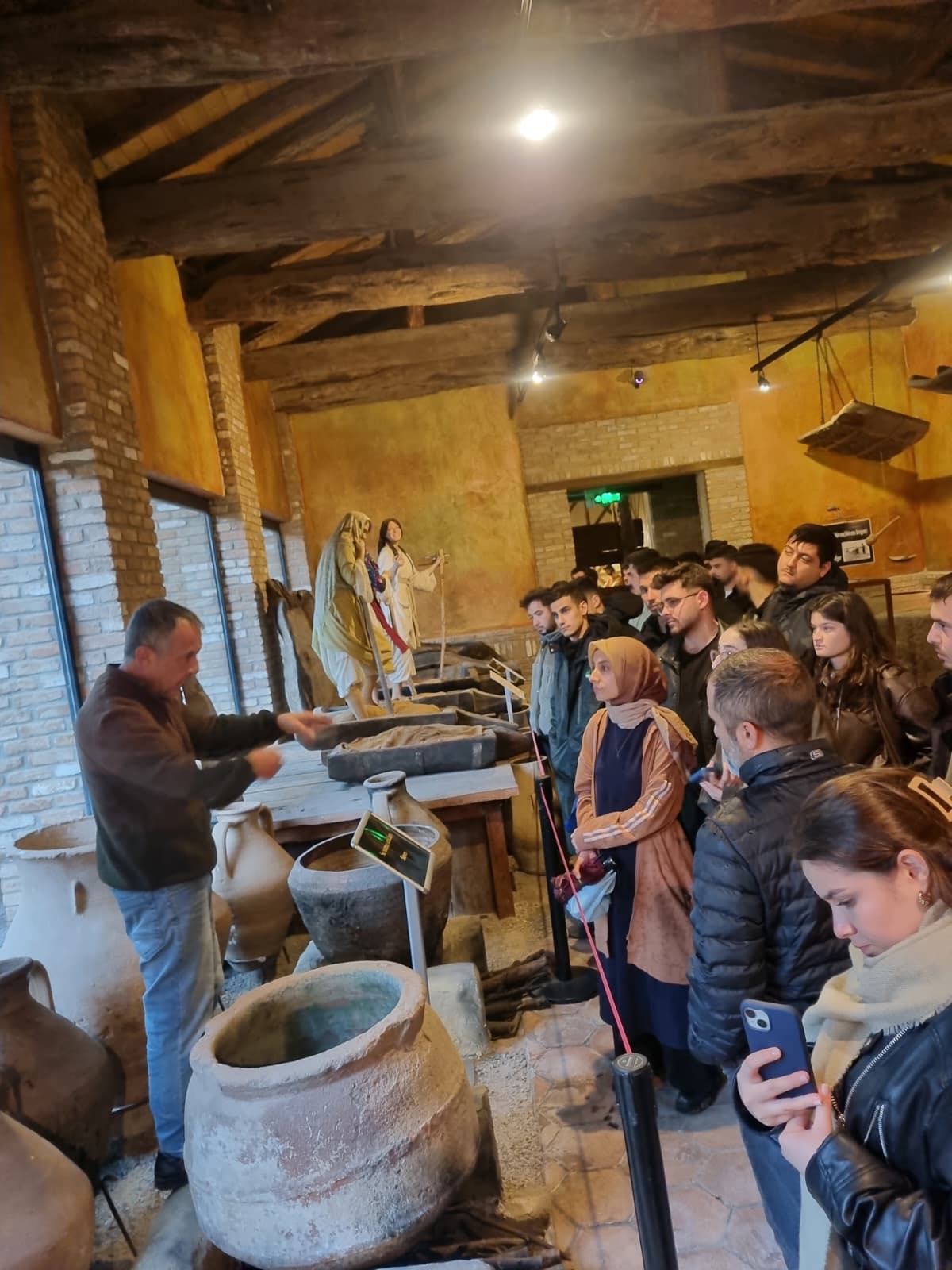 Çiftlikte bulunan Zeytinyağı Müzesi OLEATRIUM ziyaret edilmiş, geçmişten günümüze zeytinyağı ve teknolojilerinin gelişimi incelenmiştir.