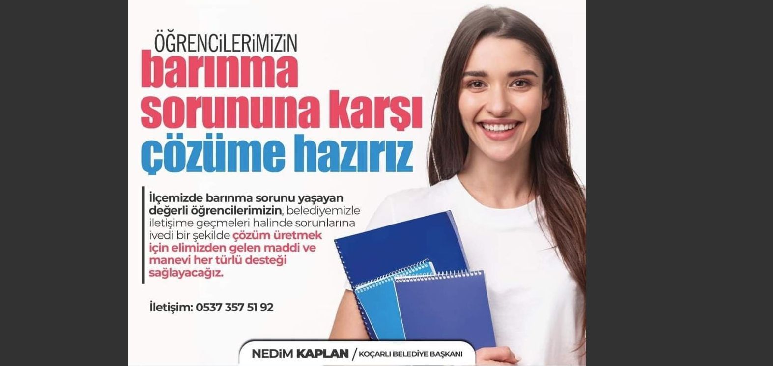 İlçemizde barınma sorunu yaÅŸayan deÄŸerli öÄŸrencilerimizin, Koçarlı Belediyesi ile iletiÅŸime geçmeleri halinde sorunlarına ivedi bir ÅŸekilde çözüm üretmek için maddi ve manevi desteÄŸi saÄŸlayacaklardır.