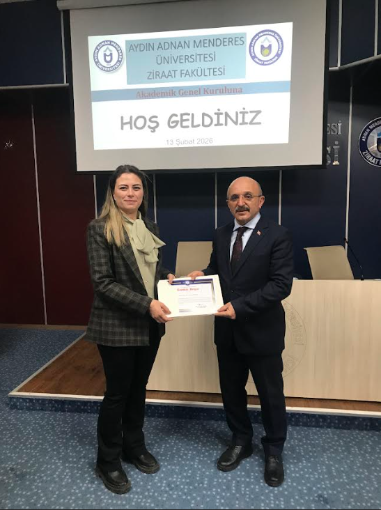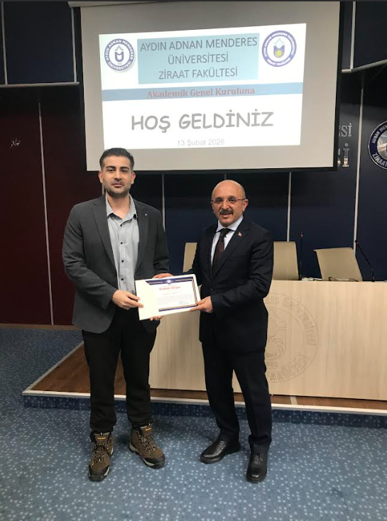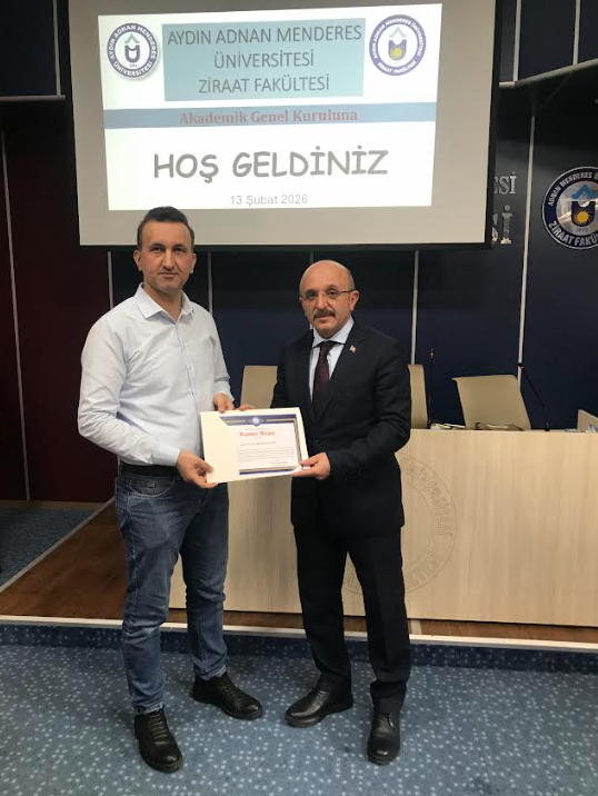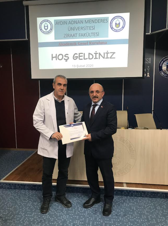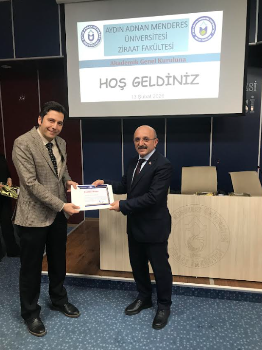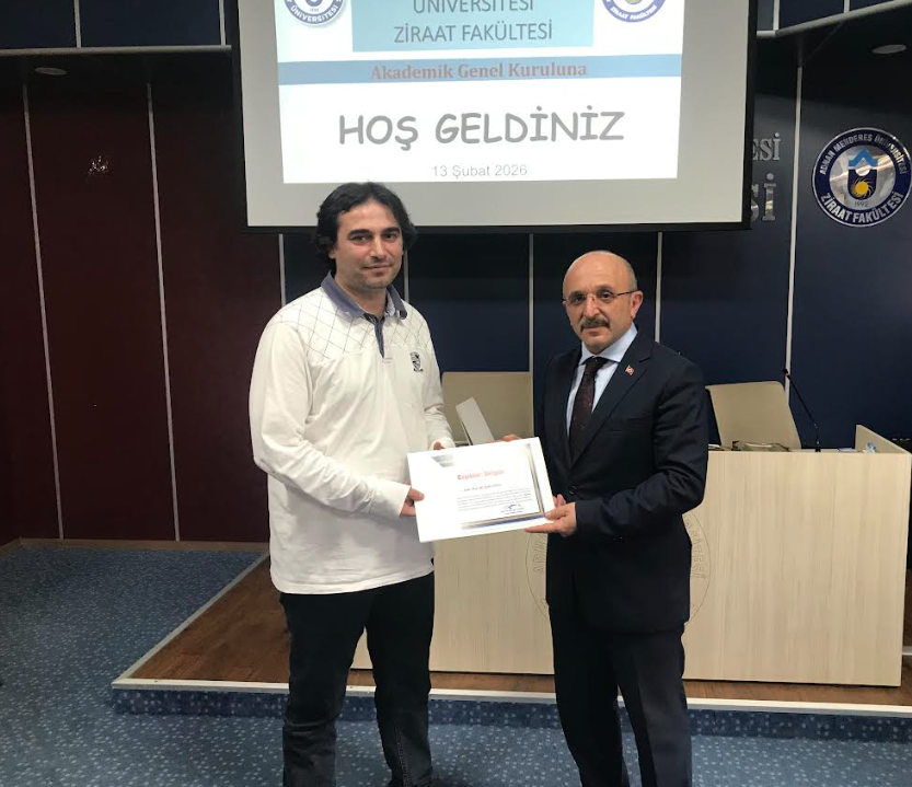 Fakültemizde 2025 yılı Akademik Teşvik Puanı kadro bazında en yüksek olan akademisyenlerimiz Prof. Dr. Aydın Ünay, Doç. Dr. Ecem Akan, Doç. Dr. Abdullah Akpınar, Doç. Dr. Uğur Tan ve 2023–2025 yılları arasında Web of Science kapsamında SCI, SCI-Expanded, SSCI ve AHCI indekslerinde yayımlanan makale sayılarıyla fakültemize nitelikli katkı sunan öğretim üyelerimiz Doç. Dr. Emre Sevindik, Prof. Dr. İbrahim Çakmak, Doç. Dr. Derya Gülçin ve misafir öğretim üyesi Prof. Dr. Sayın Alireza Saboori'ye Ziraat Fakültesi Dekanı Prof. Dr. Mustafa Sürmen tarafından başarı belgeleri verildi. Fakültemize ve üniversitemize proje geliştirme, yürütme ve akademik üretkenlik alanlarında sağladığı değerli katkılar; bilimsel çalışmaların niteliğinin artırılmasına yönelik özverili çalışmaları ve kurumsal gelişime sunduğu önemli destekler nedeniyle Zootekni Bölümü öğretim üyesi Doç. Dr. Onur Yılmaz’a teşekkür belgesini Ziraat Fakültesi Dekanı Prof. Dr. Mustafa Sürmen takdim etti.