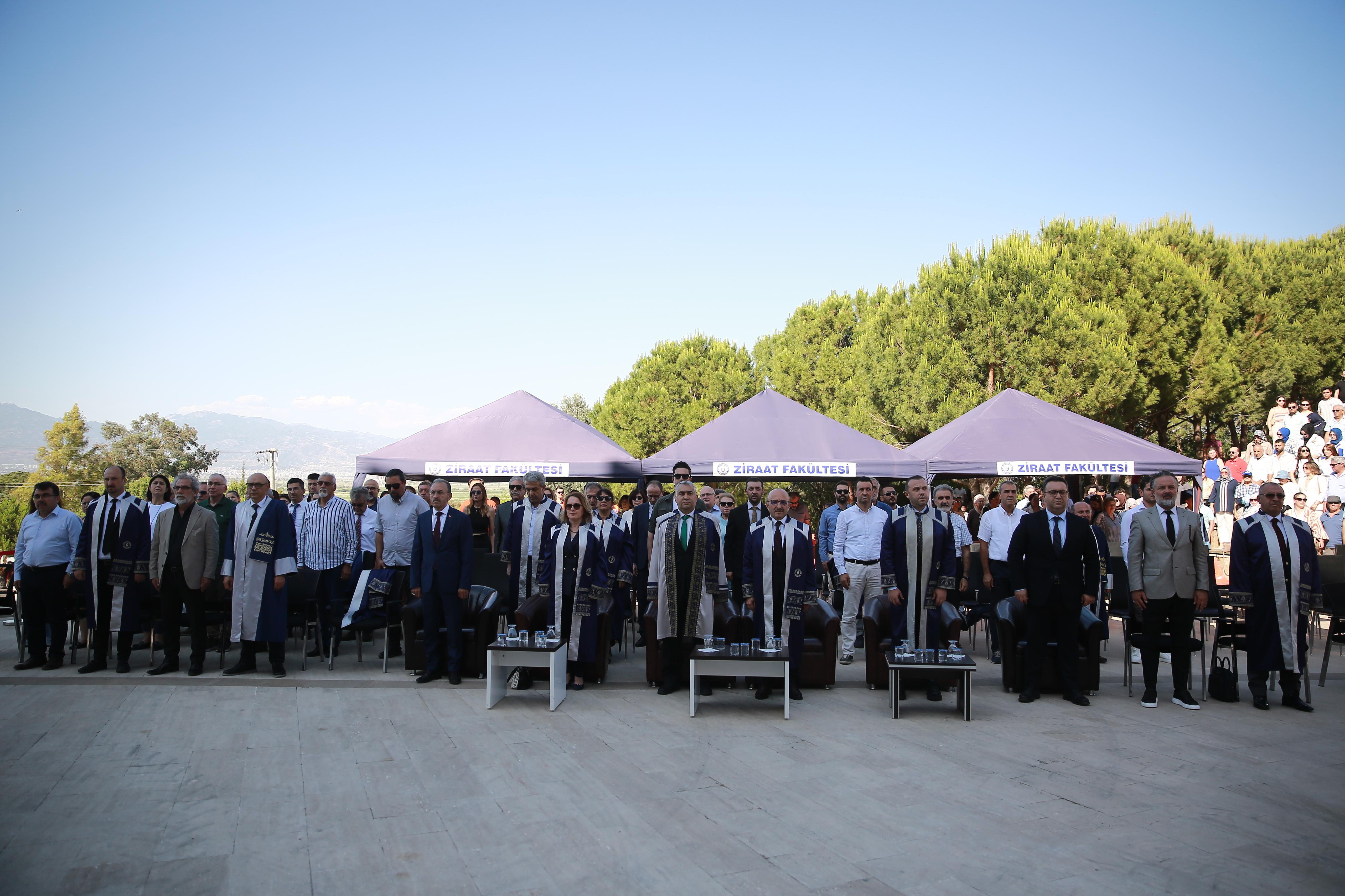 Mezuniyet Törenine; Üniversitemiz Rektörü Prof. Dr. Bülent Kent, Koçarlı Kaymakamı Ersin Tepeli, Rektör Yardımcısı Prof. Dr. Cemal İyem, Genel Sekreter V. Prof. Dr. Bertan Akyol, Sosyal bilimler Enstitüsü Müdürü Prof. Dr. Ahmet Toksoy, Ziraat Fakültesi Dekan V. Prof. Dr. Mustafa Sürmen, Sağlık Bilimleri Fakültesi Dekan V. Prof. Dr. Ayden Çoban, Spor Bilimleri Fakültesi Dekan V. Prof. Dr. Savaş Duman, Ziraat Fakültesi Dekan Yardımcıları Prof. Dr. Gürhan Keleş ve Doç. Dr. Gökhan Çınar, İl Tarım ve Orman Müdür Yardımcısı Yılmaz Bozkır, Ziraat Mühendisleri Odası Başkan Yardımcısı Doç. Dr. Ersel Yılmaz, Koçarlı İlçe Müftüsü Kazım Ünsal, akademik ve idari personel ile öğrenciler ve aileleri katıldı.