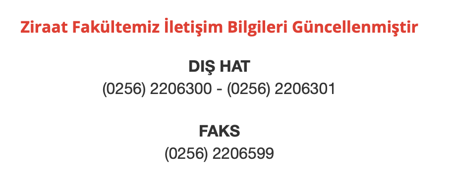 Fakültemiz İletişim Bilgileri Güncellenmiştir