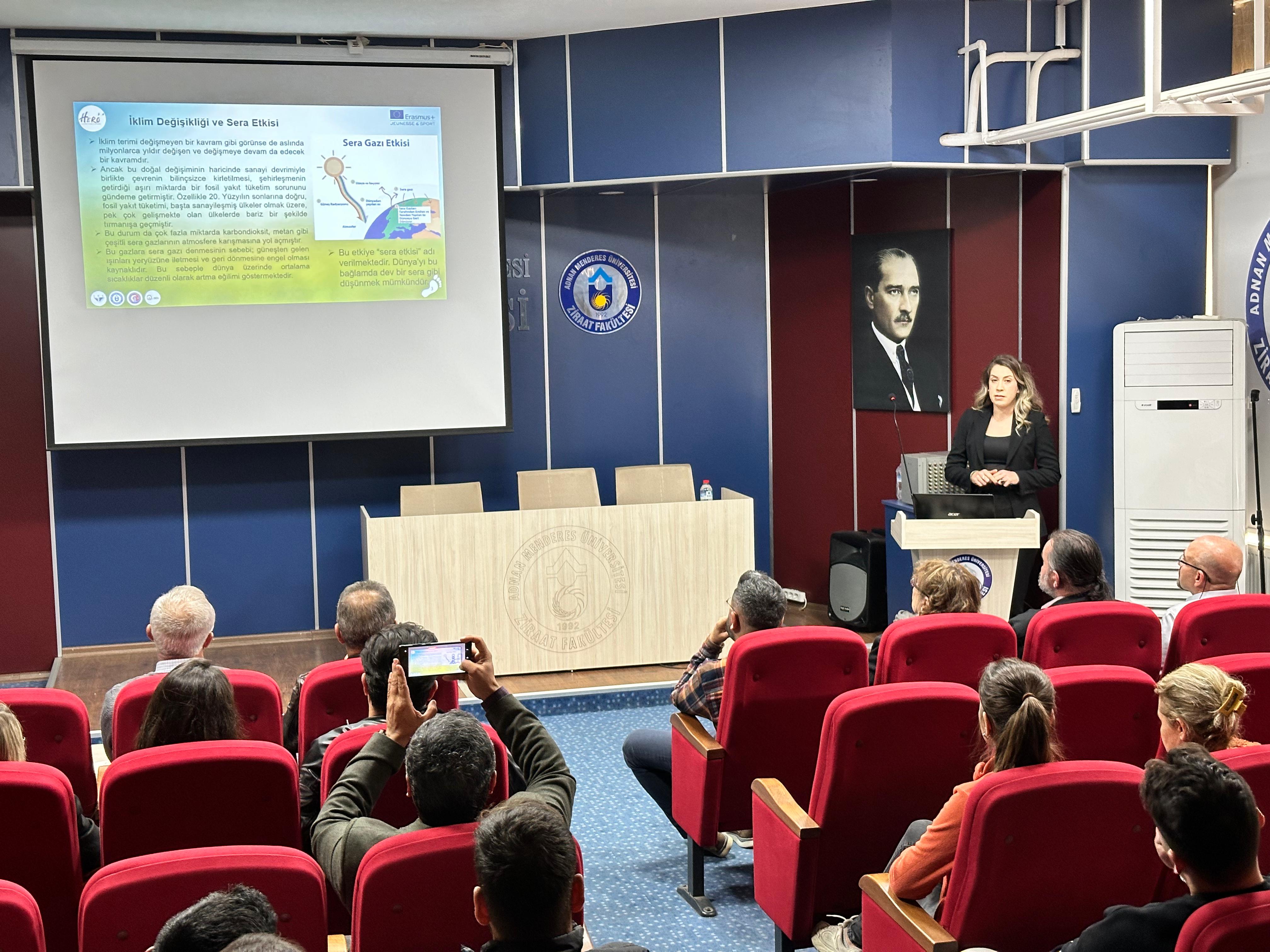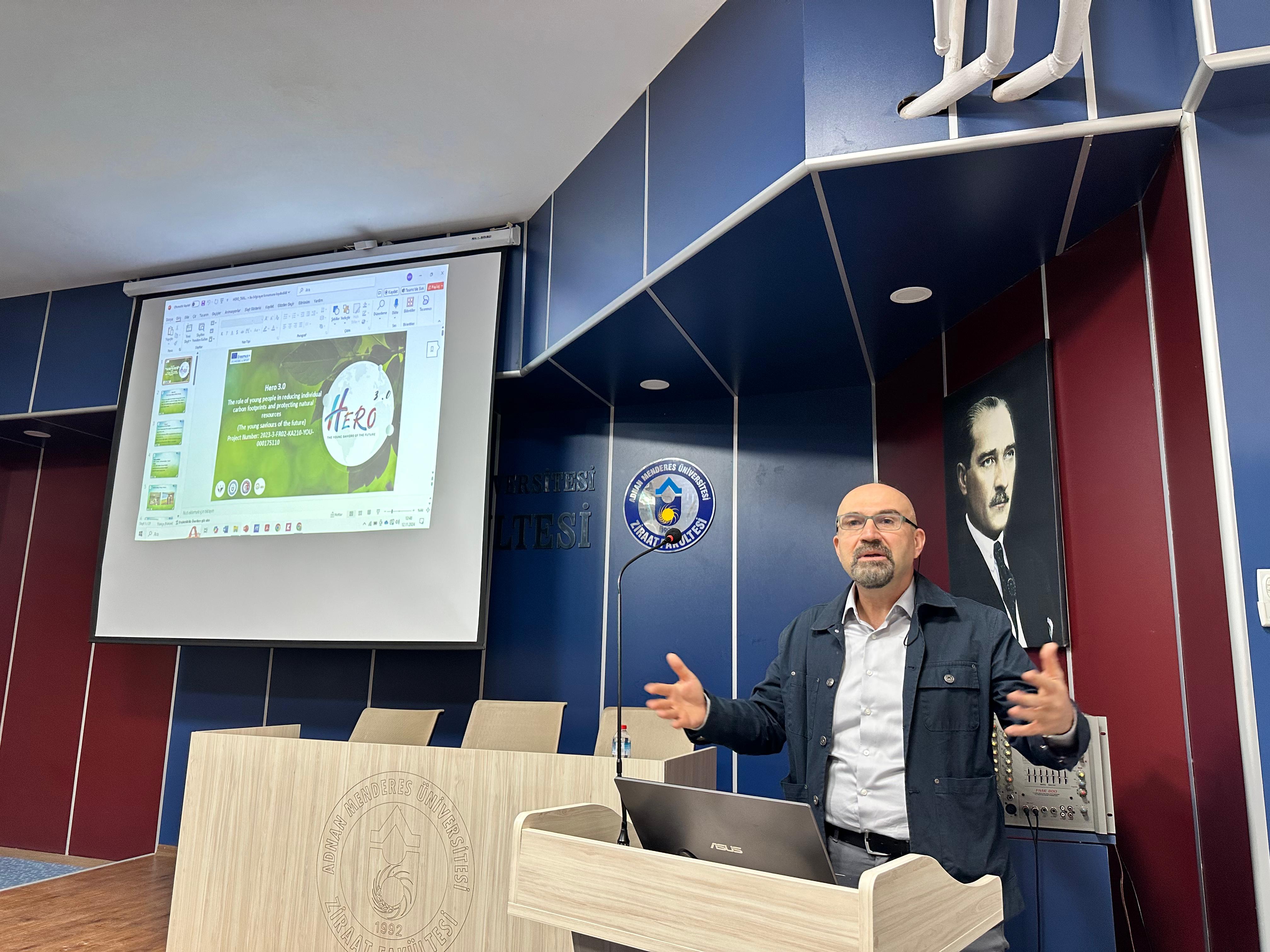 Bireysel karbon ayak izini azaltmada ve doğal kaynakları korumada gençlerin rolünün önemini vurgulayan “Hero 3.0 Young People Saviours of the Future” adlı Avrupa Birliği projesinin peers to peers adlı proje etkinliği, proje ortakları ve gençlerin katılımlarıyla Aydın Adnan Menderes Üniversitesi Ziraat Fakültesi ev sahipliğinde gerçekleştirildi.