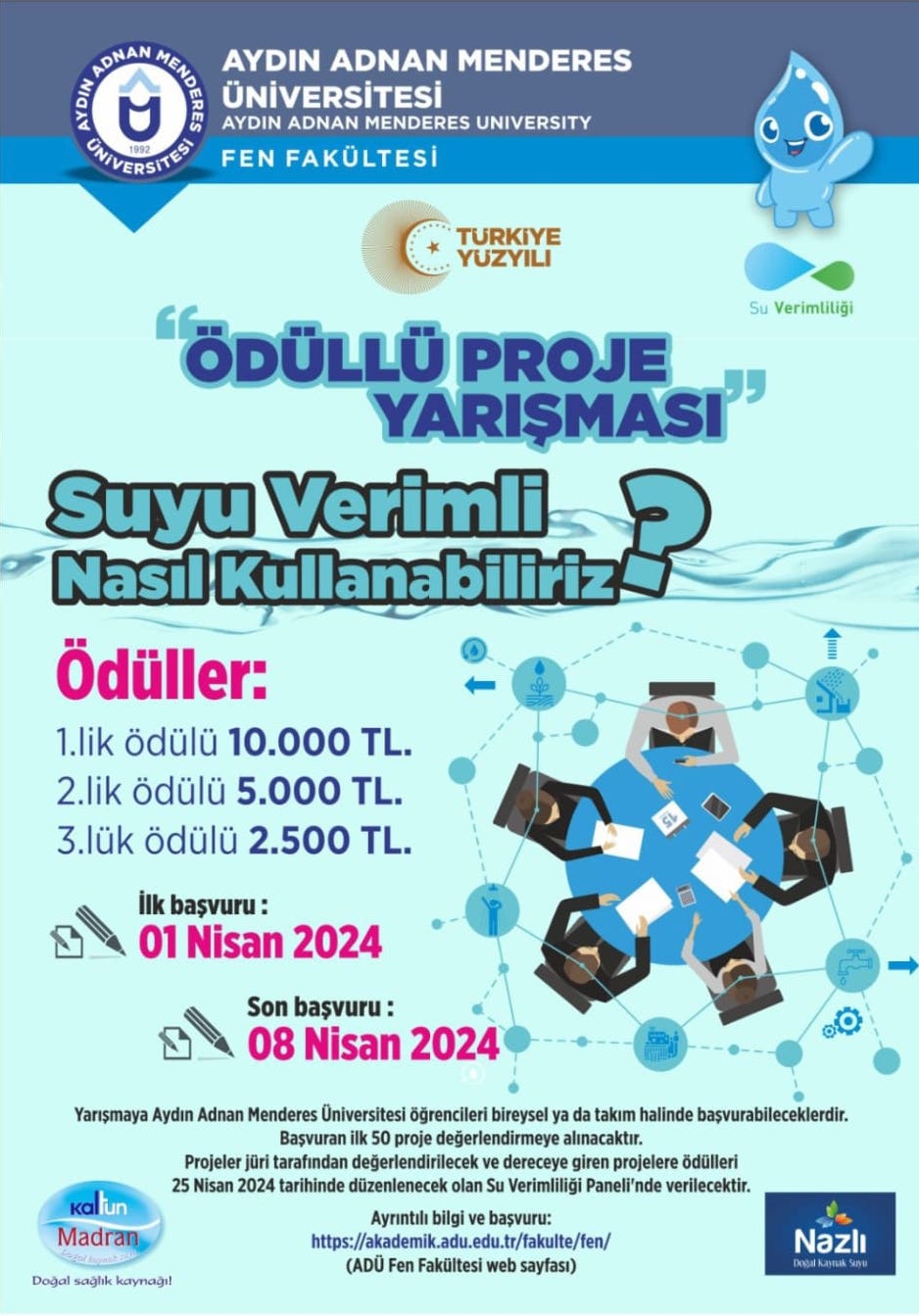 Üniversitemiz Fen Fakültesi tarafından 25 Nisan 2024 tarihinde düzenlenen "Su verimliliÄŸi" panelinde “Suyu verimli nasıl kullanabiliriz?” adlı proje yarışmasında “GeleceÄŸin Tarımında Su Yönetimi” baÅŸlıklı proje ile Fakültemiz Bitki Koruma Bölümü 4. Sınıf öÄŸrencisi Hasan Parlak birincilik ödülü olan 10.000 TL’yi almaya hak kazanmıştır.