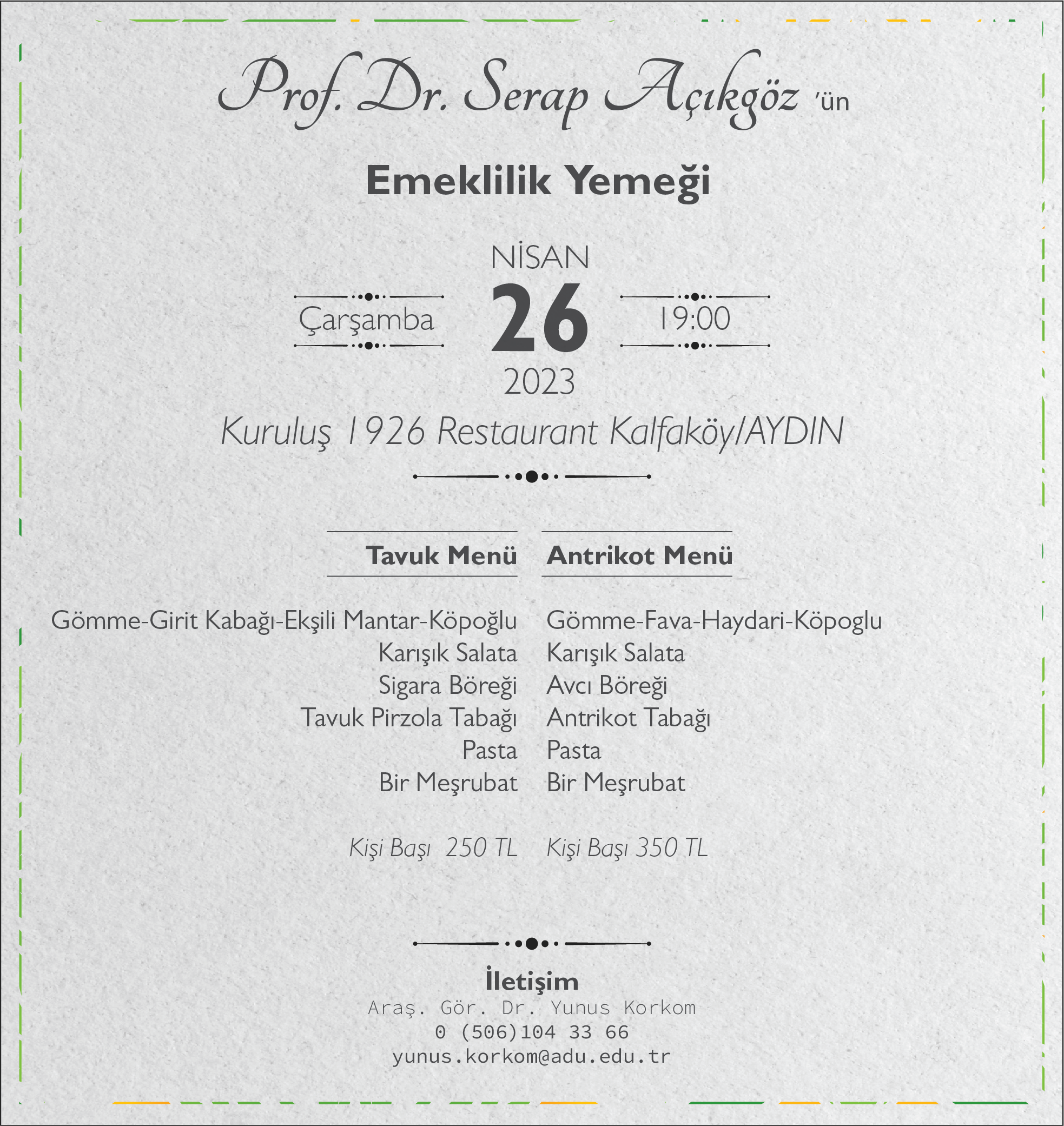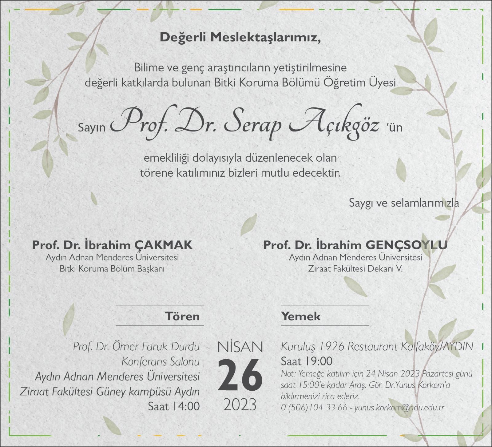 Prof. Dr. Serap AÇIKGÖZ'ün EMEKLİLİK TÖRENİ