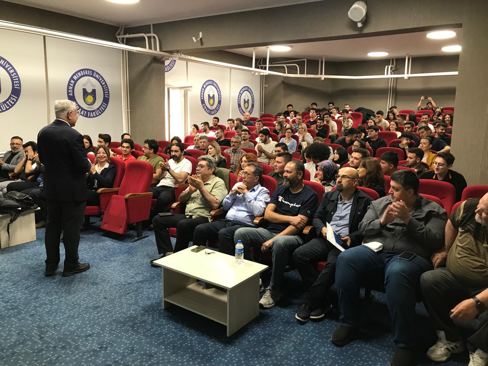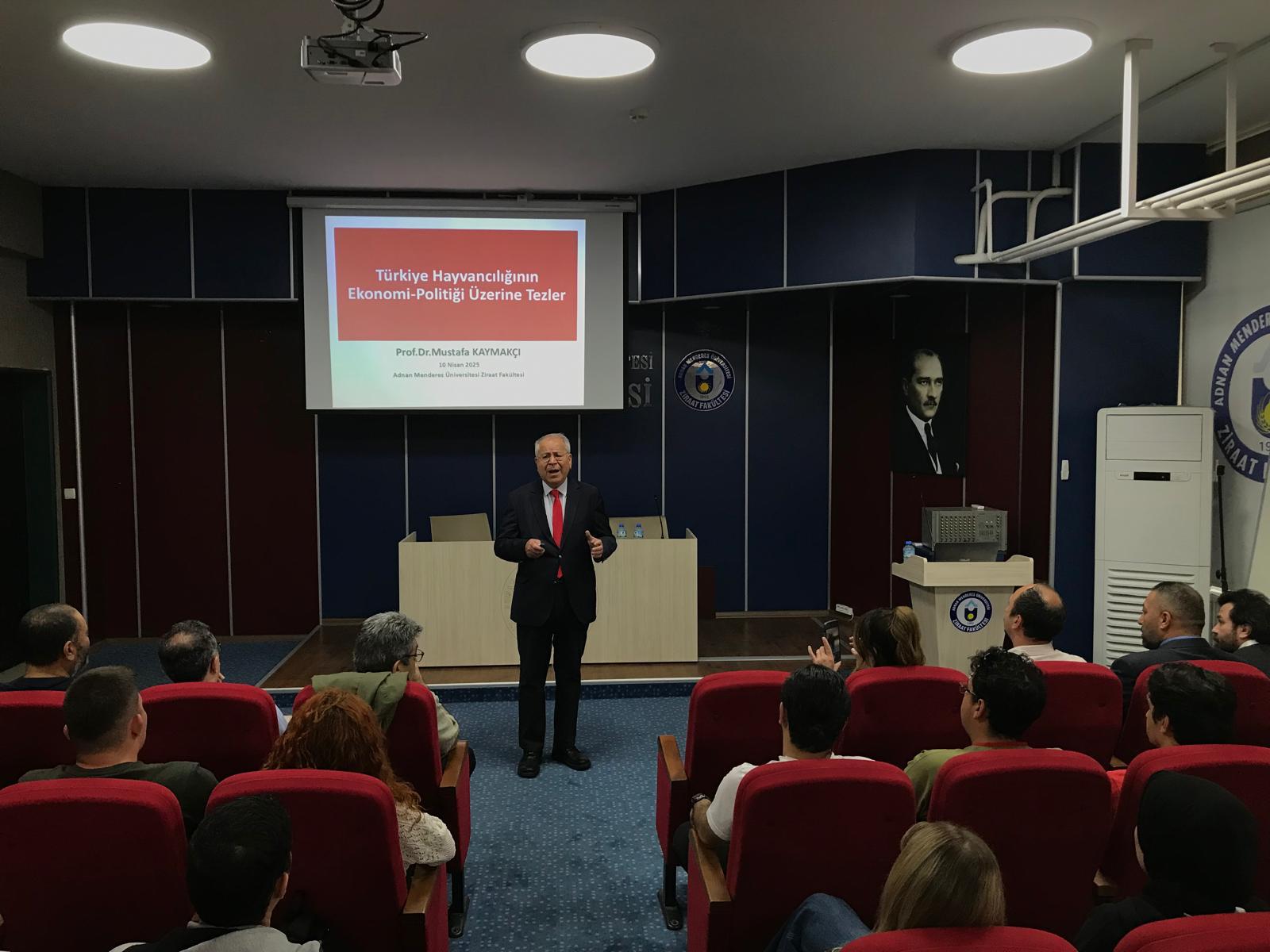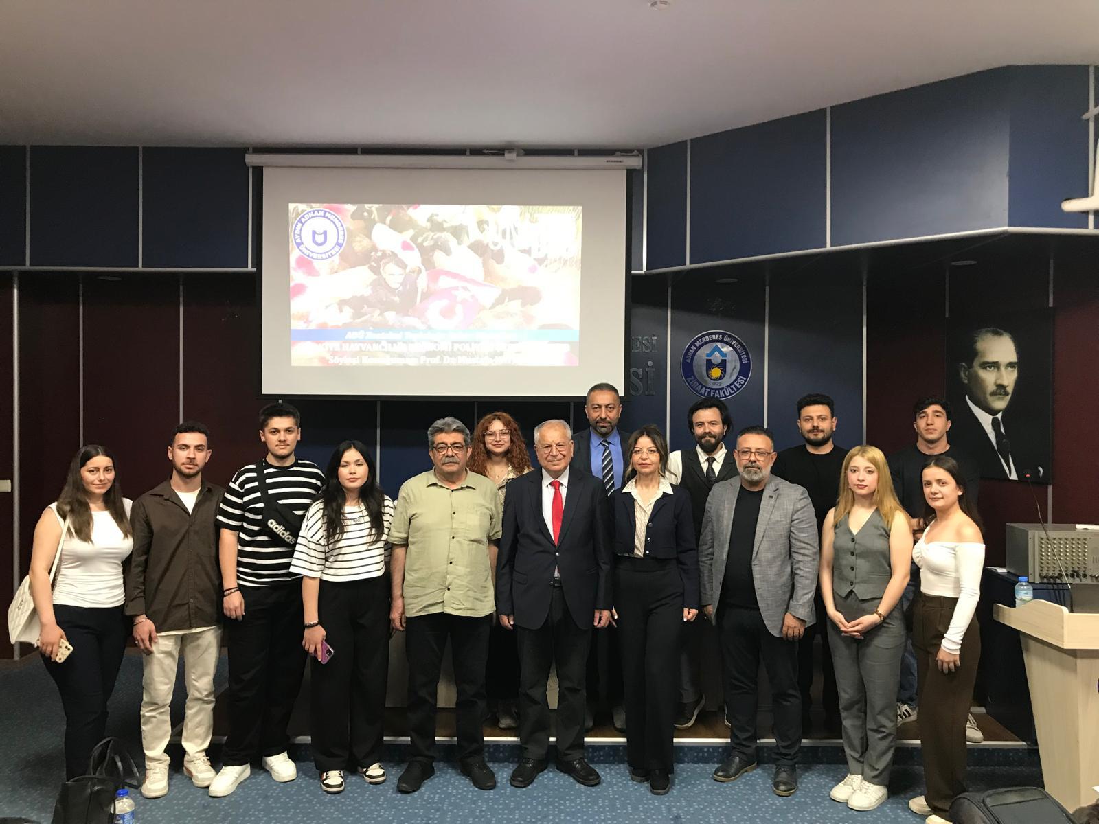ÜNİDES desteği ile düzenlenen, saygı duruşu ve İstiklal Marşı ile başlayan toplantıda, Zootekni Topluluğu başkanı Zootekni Bölümü 1. Sınıf lisans öğrencisi Eftelya CEMALi’nin ve Zootekni Bölüm Başkanı Prof. Dr. İbrahim CEMAL’in açılış konuşmalarının ardından söyleşi gerçekleştirildi. Söyleşinin konuşmacı konuğu Ege Üniversitesi Ziraat Fakültesi Zootekni Bölümü emekli öğretim üyesi, akademisyen ve yazar Prof. Dr. Mustafa KAYMAKÇI oldu. Türkiye tarımının ve tarımın iki unsurundan biri olan hayvancılığın ekonomi politik bağlamda ele alındığı söyleşi; tarımsal üretimde kırsalın, ekseriyeti oluşturan küçük ve orta büyüklükteki işletmelerin, özellikle aile işletmelerinin öneminin ortaya konmasıyla nihayet buldu.