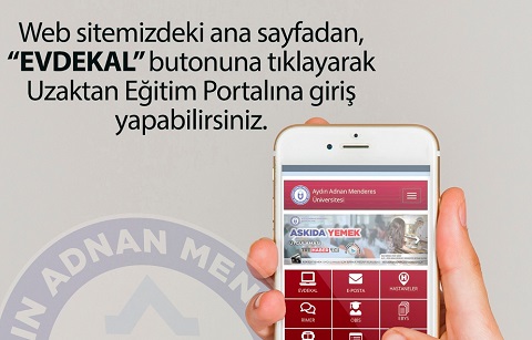 Web sitemizdeki ana sayfadan (https://www.adu.edu.tr) "EVDEKAL" butonun tıklayarak Uzaktan Eğitim Portalına giriş yapabilirsiniz. Artık 0850'li numaramıza SMS gönderebiliyorsunuz ve SMS lerinize cevap veriliyor.