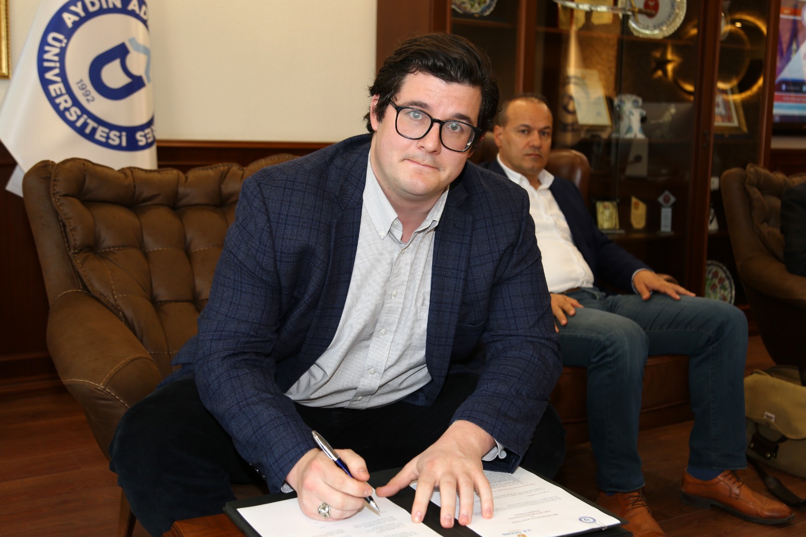 A bilateral memorandum of understanding was signed between Aydın Adnan Menderes University Faculty of Agriculture and the US Grains Council on 18.04.2022. The signing ceremony was attended by Rector Prof. Dr. Osman Selcuk Aldemir, Dean of the Faculty of Agriculture, Prof. Dr. İbrahim Gençsoylu, USA Grain Council Europe, Africa and Middle East Director Ramy H. Taieb, Global Trade Manager Reece H. Cannady, Turkey Consultant İbrahim BackpackoÄŸlu, Fisheries Association President Assoc. Dr. Åžükrü Yıldırım and on behalf of the project team Prof. Dr. Deniz Çoban. Rector Prof.Dr. Osman Selçuk Aldemir stated that such international projects will strengthen our university and our faculty at the project signing ceremony. Dean V. Prof. İbrahim Gençsoylu, on the other hand, stated that they would help in every way to support the study. Project Leader Deniz Çoban gave information about the project. “In the research project, experiments will be made on the addition of DDGS at different levels to the feed rations used in aquaculture.DDGS is a byproduct of dry processing of corn and it has high percentages of protein and energy. Worldwide there are many studies done on DDGS utilization in livestock feeds but there are not any studies on using in European seabass, gilthead sea bream and rainbow trout feeds. Funding needed will be supplied by the USGC in partnership with North Dakota Corn Utilization Council, and it is expected to be a long-term cooperation”.