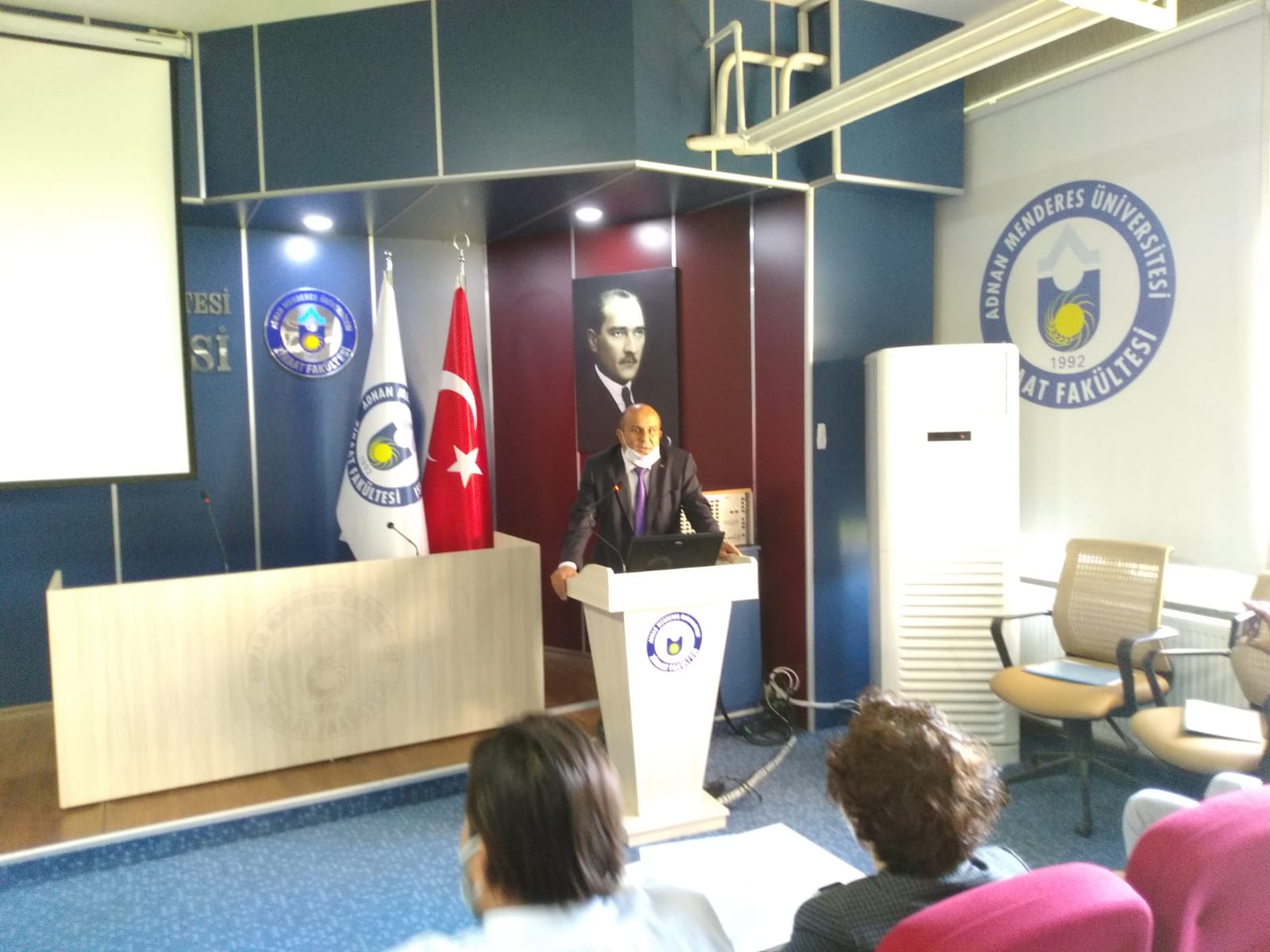 10 Kasım 2021 ÇarÅŸamba günü Aydın Adnan Menderes Üniversitesi Ziraat Fakültesi tarafından 10 Kasım Ulu Önder Atatürk’ün ölüm yıldönümü nedeniyle anma günü etkinliÄŸi düzenlendi. EtkinliÄŸe, Ziraat Fakültesi bahçesinde bulunan Atatürk büstü önünde saat 09.05'de tüm akademik, idari personelimiz ve öÄŸrencilerimizin katılımıyla saygı duruÅŸu ile baÅŸlandı. Saygı duruÅŸu sırasında bayraklar yarıya indirildi. Daha sonra etkinlik Ömer Faruk Durdu Toplantı Salonunda devam etti. Saat 11.00'de devam eden etkinliÄŸe ADÜ Atatürk İlkeleri ve İnkılap Tarihi Bölümü ÖÄŸretim Görevlisi Dr. Mutlu ADAK konuk olarak katıldı. Sayın Dr. Mutlu ADAK katılımcılara Atatürk’ün Türk Ulusuna bıraktığı manevi miraslar ve Ziraat ile Tarım açısından Ulu Önder Atatürk’ün yaÅŸanmış anılarını paylaÅŸtı. Ziraat Fakültesi Dekan V. İbrahim Gençsoylu, ise “10 Kasım Atatürk’ü anma günlerinin çok önemli olduÄŸunu, bizlerin ve sizlerin üzerine önemli görevler düÅŸtüÄŸünü belirtti”. Dekan Yardımcıları, Ziraat Fakültesi ÖÄŸretim Üyeleri ve öÄŸrencilerinin izleyici olarak katıldığı etkinliÄŸe Ziraat Fakültesi Dekan V. İbrahim Gençsoylu’nun, Dr Mutlu ADAK’a bir plaket takdimiyle sona erdi.