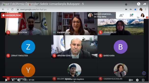 Aydın Adnan Menderes Üniversitesi Ziraat Fakültesi Dekanlığı tarafından 07.04.2021 ÇarÅŸamba günü Ziraat Fakültesi öÄŸrencilerine yönelik olarak düzenlenen “Sektörle BuluÅŸma” teması altında Kariyer Planlama EÄŸitim’lerinin bir yenisi çevrimiçi olarak gerçekleÅŸtirildi. Etkinlikte Kardelen Peyzaj Planlama İnÅŸ. Tic. Ltd. Åžirketinin kurucusu Peyzaj Yüksek Mimarı Sayın Nuran ALTUN konuk edildi. Youtube üzerinden canlı olarak yayınlanan etkinlikte Ziraat Fakültesi ÖÄŸretim Elemanlarının ve öÄŸrencilerinin yoÄŸun ilgisi görüldü. Sayın Nuran Altun konuÅŸmasında Ziraat Fakültesi öÄŸrencilerine mezun olduktan sonra kariyerlerine yönelik olumlu olacak deneyimlerini paylaÅŸtı. Daha sonra meslek yaÅŸamı içerisinde hayata geçirdiÄŸi baÅŸarılı projelerinin detaylarını anlatan Altun, öÄŸrencilerden gelen yoÄŸun soruları cevapladı. SöyleÅŸi Ziraat Fakültesi Dekan V. Prof. Dr. İbrahim Gençsoylu’nun teÅŸekkür konuÅŸmasıyla sonlandırıldı. Prof. Dr. Gençsoylu, “öÄŸrencilerimizin özel sektör ile buluÅŸmasının, mezun olmadan önce yol haritalarını çizmelerinde ve öÄŸrencilerimizin geliÅŸmesinde akademik eÄŸitimin yanında özel sektör tecrübelerinin de önemli bir yer tuttuÄŸunu” belirtti.