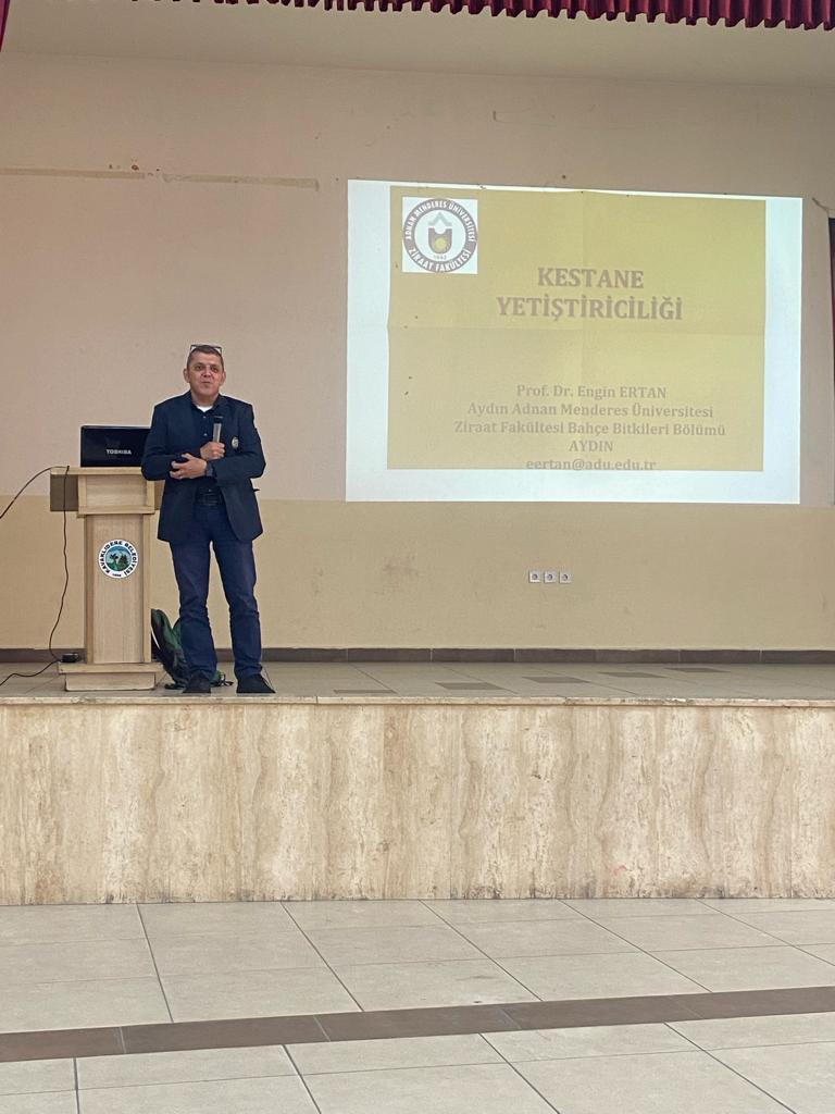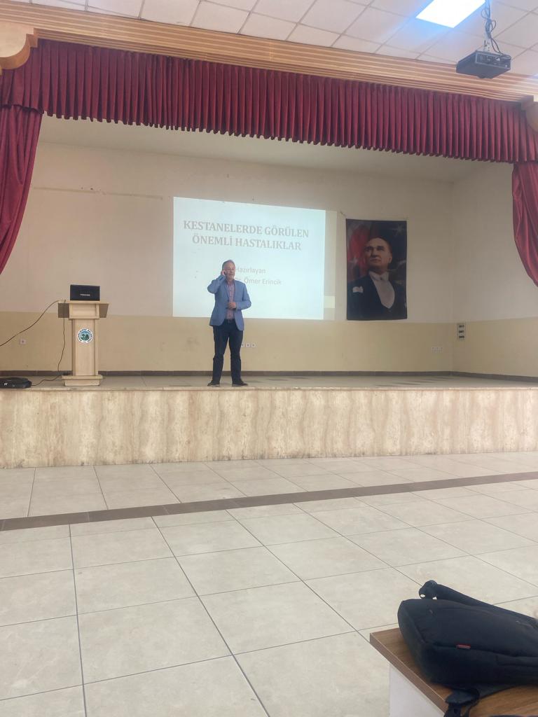 Fakültemiz, Kavaklıdere (Muğla) İlçe Tarım Müdürlüğü tarafından gelen istek üzerine 23 Ekim 2023 tarihinde kestane üreticilerine eğitim verdiler. Fakültemiz Bahçe Bitkileri Bölümü öğretim üyesi Prof. Dr. Engin Ertan’ın “Kestane Yetiştiriciliği ve Sorunları”, Bitki Koruma Bölümü Öğretim Üyesi Prof. Dr. Ömer Erincik “Kestane Hastalıkları ve Mücadele Yöntemleri” ve Prof. Dr. Mehmet Karagöz’ün ise “Kestane Zararlıları ve Mücadele Yöntemleri” konularında verdikleri eğitim çalışmasına Kavaklıdere İlçe Tarım Müdürlüğü personeli, Kavaklıdere Ziraat Odası Yönetimi ile kestane üreticileri katılmışlardır.