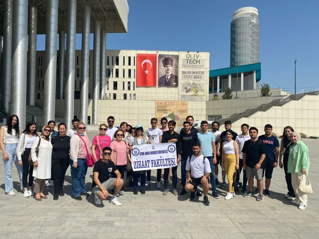 Fakültemiz Tarım Ekonomisi Bölümü önderliÄŸinde Bahçe Bitkileri, Tarla Bitkileri, Toprak ve Bitki Besleme Bölümünden öÄŸretim elemanları ve öÄŸrencileri 26.05.2022 - 29.05.2022 tarihleri arasında sürecek olan Olive Tech fuarına 26.05.2022 tarihinde katılım saÄŸlamışlardır. Bu katılım, öÄŸrencilerin, teorik bilgilerin, uygulamadaki örnekleri bizzat görmelerini, firmalarla, kurumlarla ve Ar-Ge kuruluÅŸları ile tanışmaları, mesleki bilgi ve deneyim yanında, fuar kültürü edinmelerini de saÄŸlamıştır.