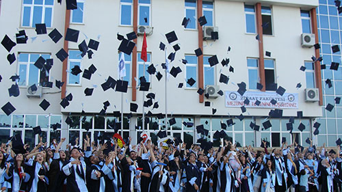 Bu dönem mezunlarımız içinde ender rastlanan bir durum gerçekleşti. Baba ve oğlu birlikte mezun olarak hediyelerini Prof. Dr. Halil KIRNAK’ tan aldılar. Dereceye giren öğrencilerimize plaketleri takdim edildikten sonra, öğrencilere mezuniyet belgelerinin verilmesinin ardından kep atma seramonisiyle tören sona erdi.